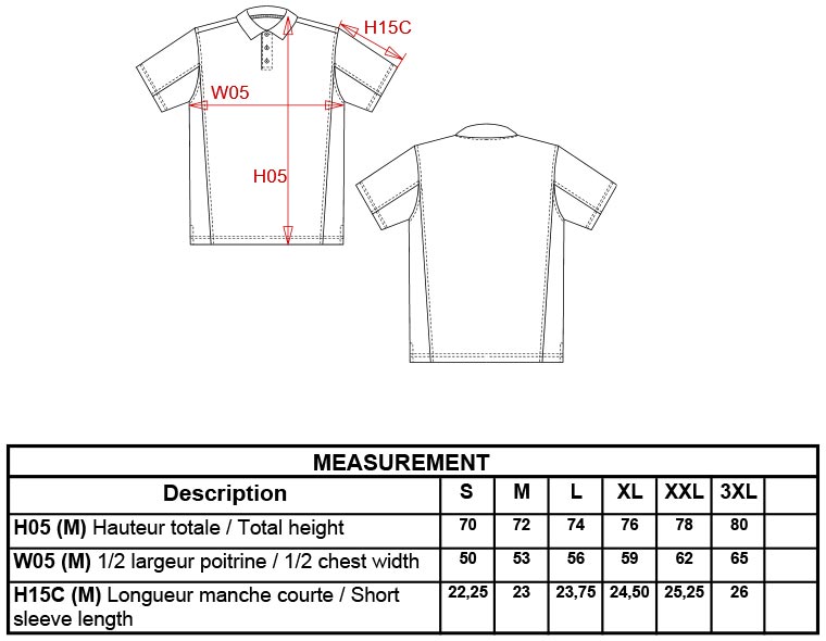 Material: 220g/m², 65% Polyester, 35% Baumwolle, Piqué