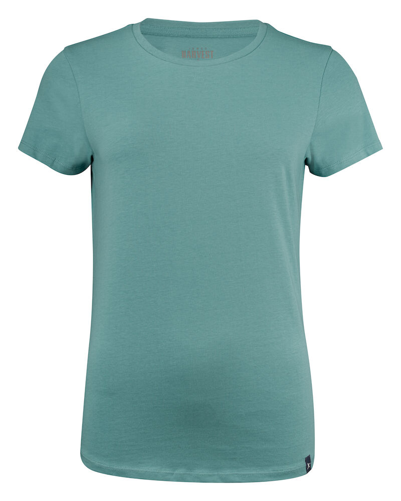 T-Shirt mit V-Ausschnitt für Damen. 2-lagiges Stretch im Nacken.