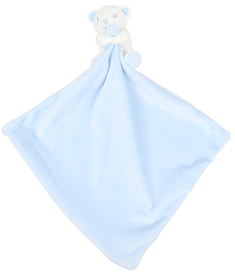 Weiche, doppellagige Plüsch-Decke (teils mit interner Rassel; Rassel nur in den Farben blue (Bär) und pink (Hase)