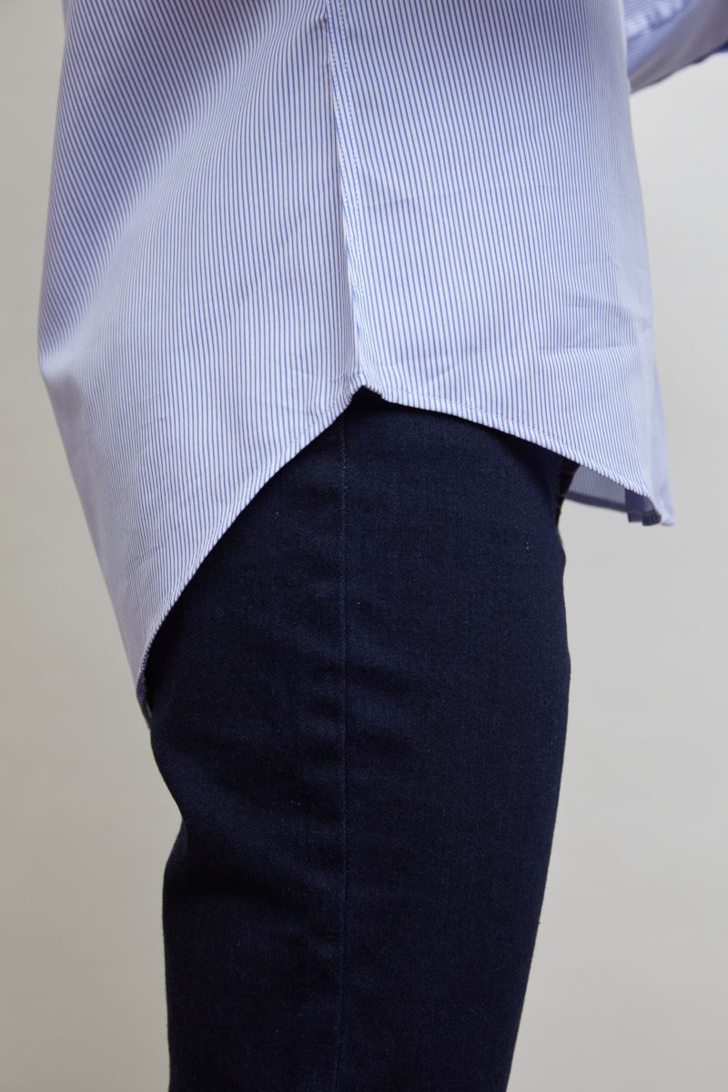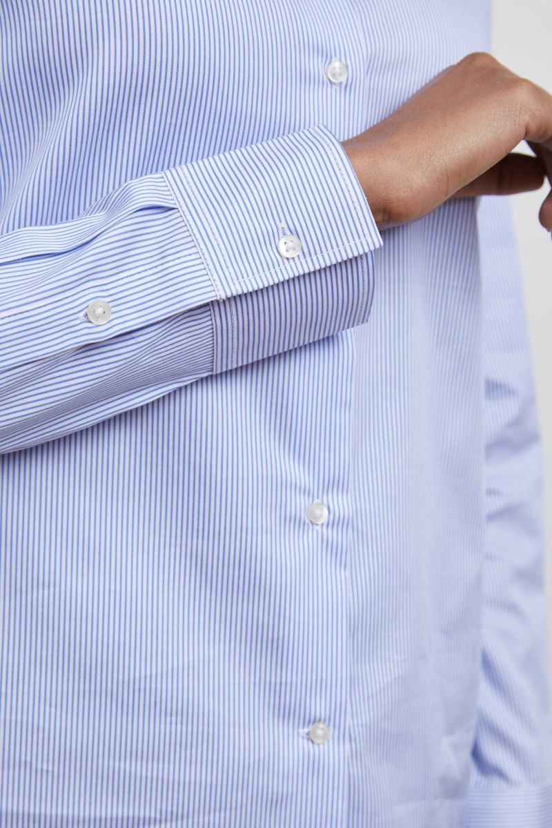 Italienischer Kragen mit einem Knopf, stäbchenverstärkter Kragen, verstellbare Manschetten, Rückenpasse, Rückenfalten an Rückenpasse, TearAway Label, neutrales Grössenlabel, 40° waschbar, Easy Care, trocknergeeignet bei niedriger Temperatur, Knitterschutz Vorbehandlung