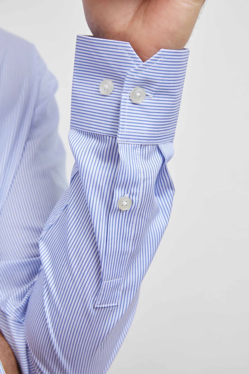 Italienischer Kragen mit einem Knopf, stäbchenverstärkter Kragen, verstellbare Manschetten, Rückenpasse, TearAway Label, neutrales Grössenlabel, 40° waschbar, Easy Care, trocknergeeignet bei niedriger Temperatur, Knitterschutz Vorbehandlung