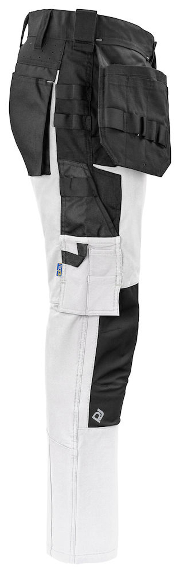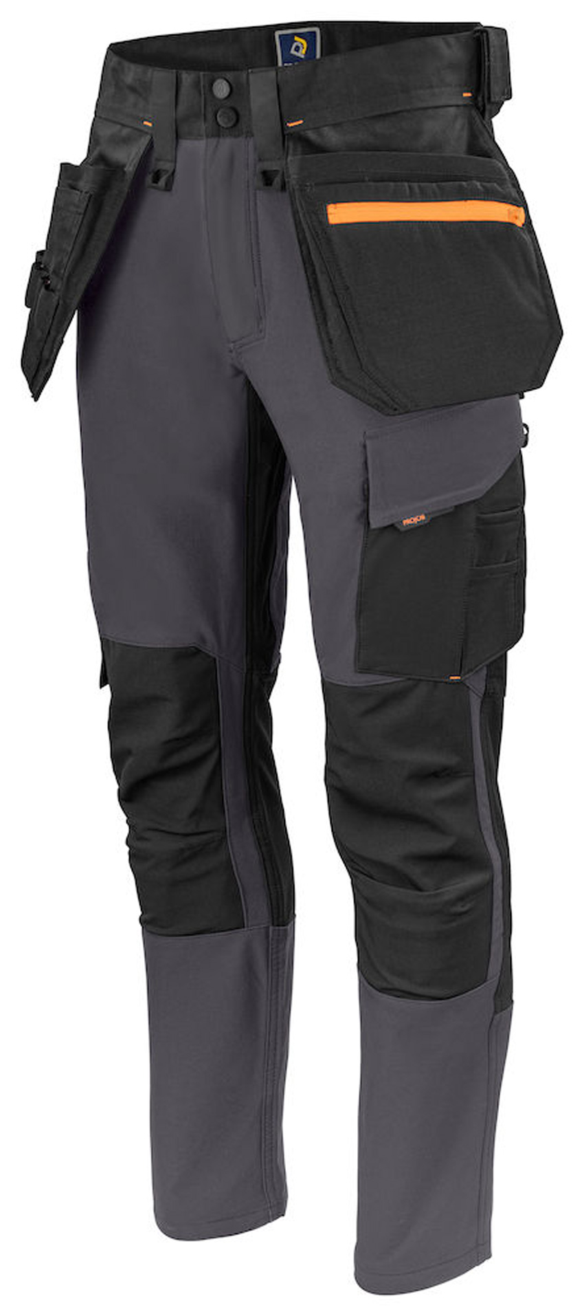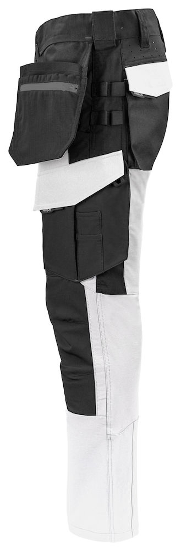 Modern geschnittene Bundhose aus vollem Stretch, die ein Maximum an Bewegungsfreiheit und Komfort bietet. Die Seiten am Bund sind nicht in Stretch, um der Hose Stabilität zu verleihen. Belüftung auf der Rückseite der Taille. Geräumige Beintaschen auf beiden Seiten. Linke Beintasche für Werkzeug und Stifte, außerdem eine Handytasche mit Magnetverschluss und eine Halterung zur Befestigung ID Karte. Auf der rechten Seite Metertasche und Tasche für Werkzeug mit Messerknopf. Breitere Gürtelschlaufe auf der Rückseite, um Druck vom Gürtel zu vermeiden. Gesässtaschen aus Cordura®, eine mit Klappe und Magnetverschluss. Vorgeformte Knie. Innentaschen für Knieschützer, in zwei Höhen einstellbar. Holstertaschen, Beinabschlüsse und Knie sind mit Cordura® verstärkt, um die Haltbarkeit zu erhöhen. Möglichkeit zur Befestigung von MOLLE Systemen an beiden Seiten.