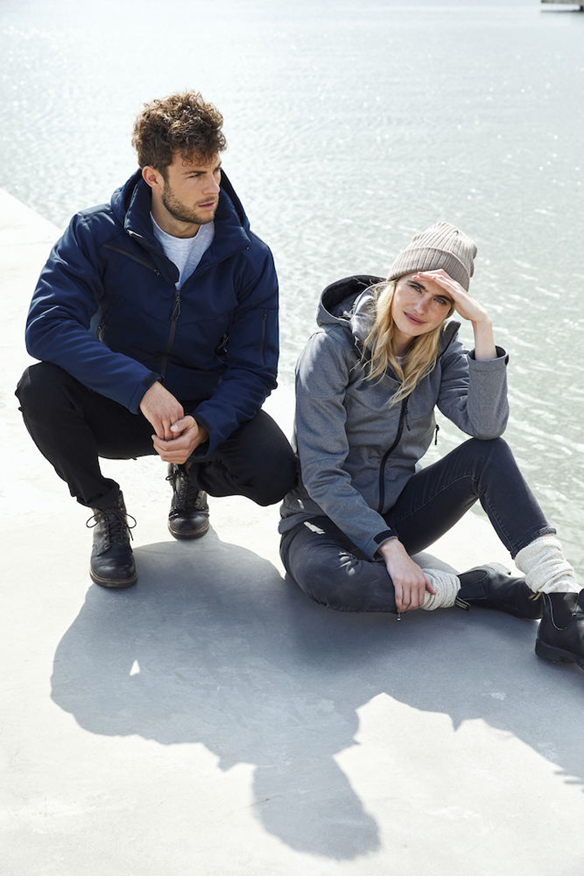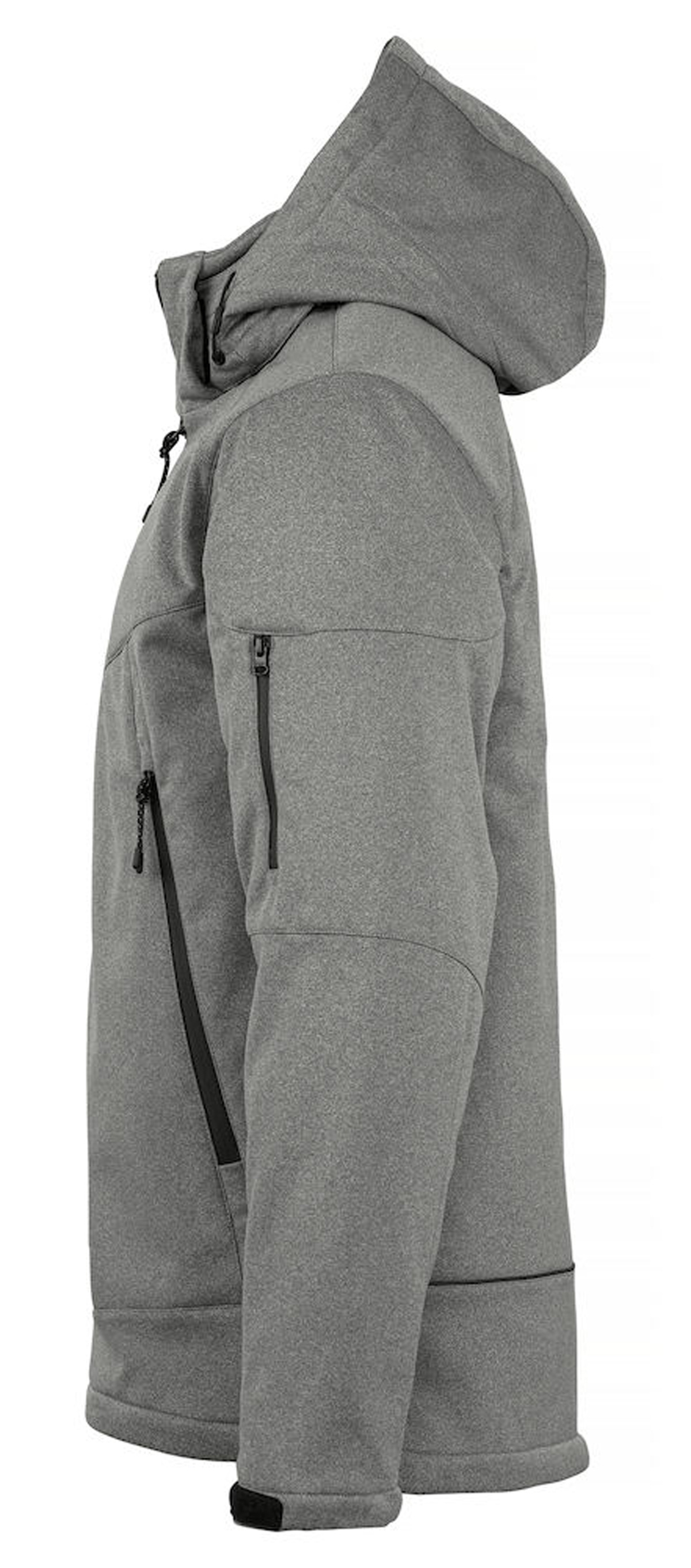 Komfortable und moderne, wattierte und taillierte Softshell-Jacke. Eine abnehmbare und verstellbare Kapuze. Vorgeformte Ärmel für mehr Bewegungsfreiheit. Vier Aussentaschen mit wasserdichten Reissverschlüssen und zwei Innentaschen, eine mit Reissverschluss und eine aus Mesh. Mit Klettverschluss verstellbare Ärmelbündchen und reflektierenden Details auf dem Rücken. Ein Reissverschluss im Futter erleichtert das Bedrucken oder Besticken. 100% Polyester mit TPU-Membran, laminiert mit 100 % Polyester-Fleece. WP 10000/MVP 5000