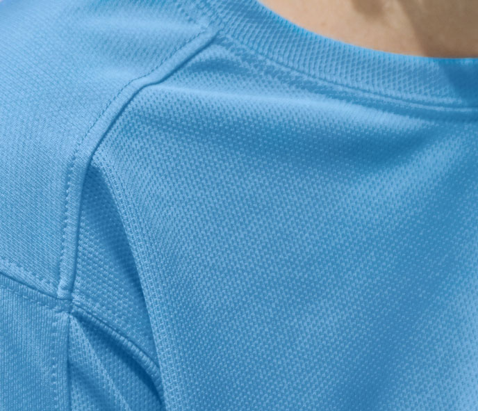 Doppelnaht an der Schulter, angenehm kühlend zu tragen durch optimalen Feuchtigkeitsabtransport.