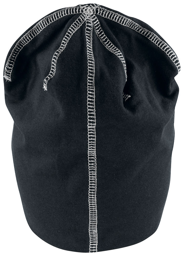 Double Single-Jersey Mütze mit 6 Flatlock-Nähten oben.