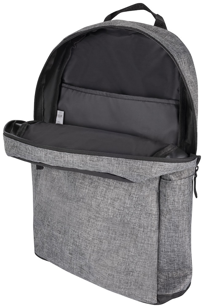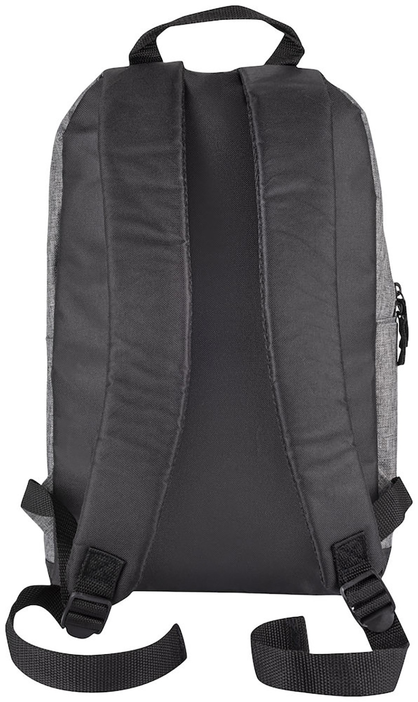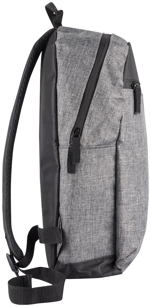 Ein eleganter Alltagsrucksack in grau meliert mit SBS-Reissverschluss, einem Hauptabteil mit inner Tasche und einer Aussentasche.