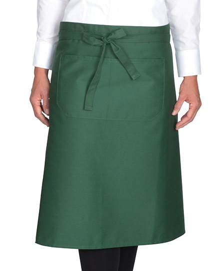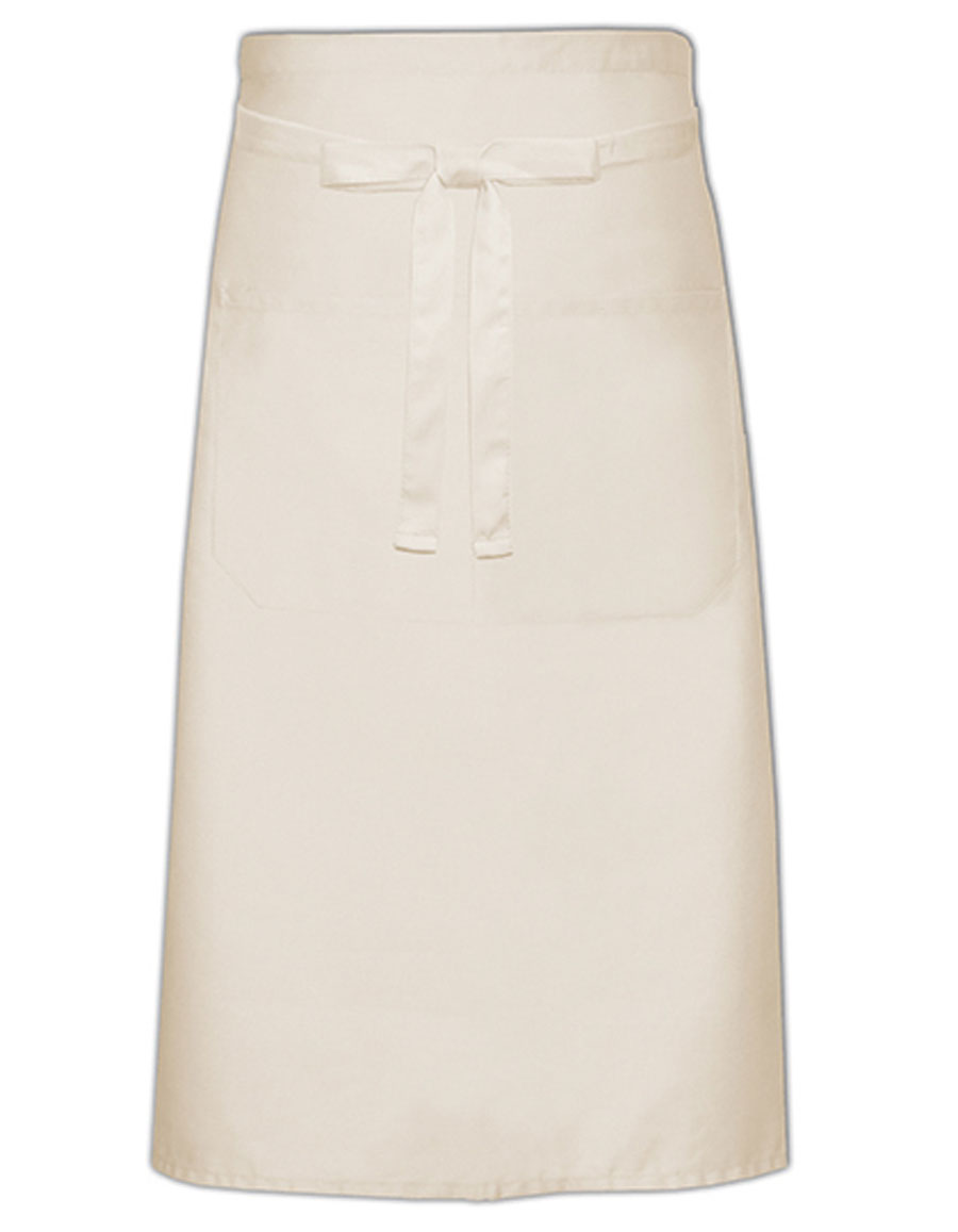 Kurzversion der Bistroschürze Business Verstärkte Nähte Bänder aus Schürzenstoff Pflegeleichtes Mischgewebe in Köperbindung Vorgeschrumpft Reaktiv gefärbt Waschbar bis 60 °C 240 g/m², 100 x 70 cm (Breite x Länge)65% Polyester / 35% Baumwolle (Natural: 100% Baumwolle)