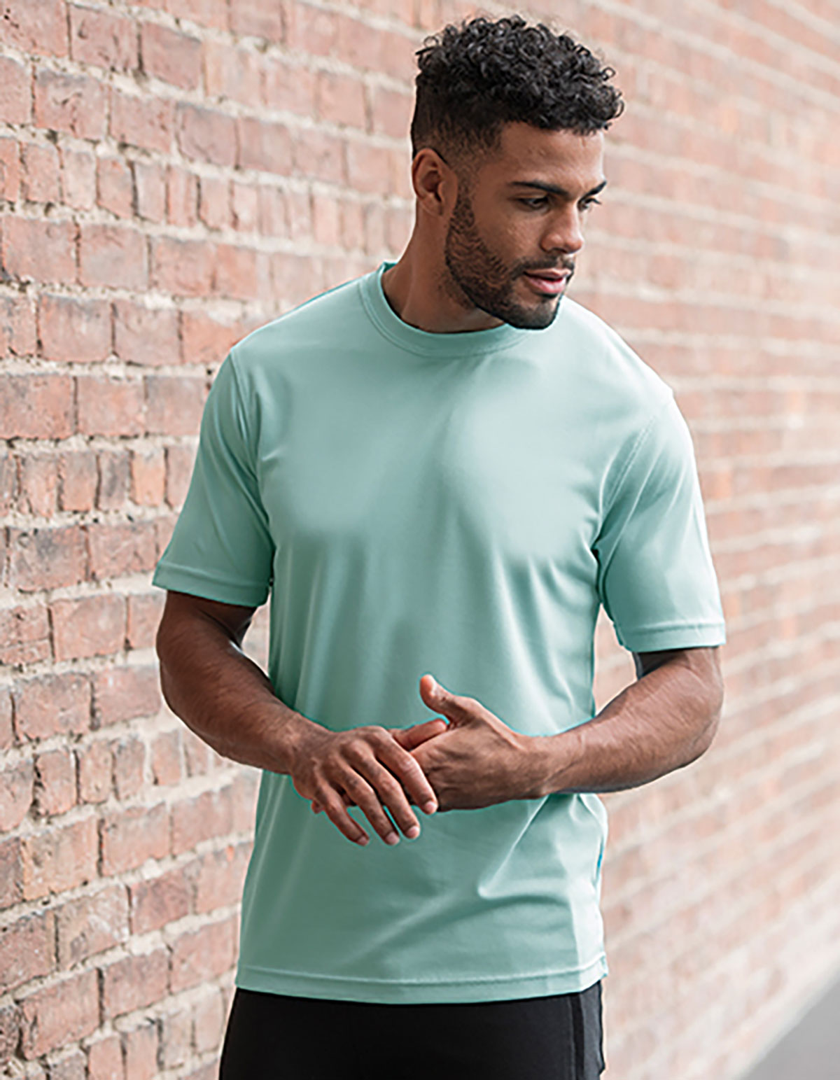 Doppelnahtverarbeitung, bequeme Passform, AWDis Neoteric™-Material für bessere Feuchtigkeitsaufnahme, Kragen und Ärmelbündchen aus Shirt-Material, Nackenband, Set-In Ärmel