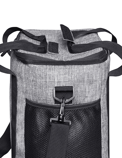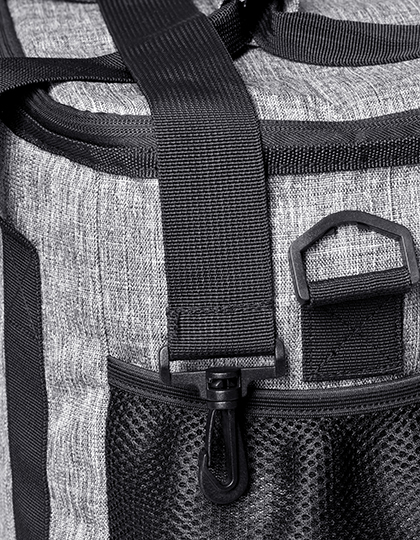 Ein Hauptfach mit Reißverschluss, alle Reißverschlüsse in Schwarz, Gummi-Zipp-Puller mit „bags2GO“-Prägung, zwei Seitentaschen aus Airmesh mit Gummizug, Schaumstoff-Isolierung, längenverstellbarer und abnehmbarer Umhänge-Tragegurt, zwei Trageriemen mit gepolstertem Klett-Handgriff, Volumen: ca. 18 Liter, Lieferung ohne Inhalt/Deko