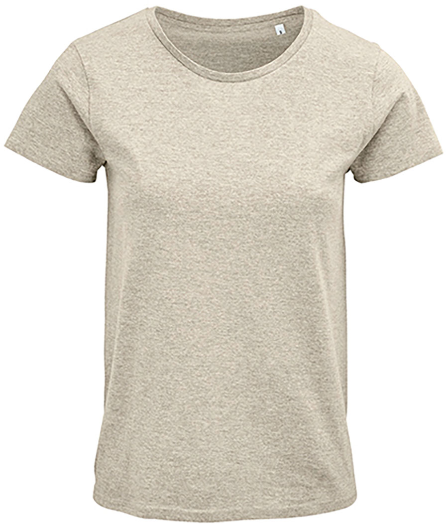 Damen Bio T-Shirt Material: 150g/m², 100% OCS zertifizierte Bio-Baumwolle, enzymgewaschen(Heather Beige, Heather Light Green, Heather Pink: 60% Baumwolle / 40% Polyester), (Grey Melange: 85% Baumwolle / 15% Viskose) (Ash: 98% Baumwolle / 15% Viskose) Leicht taillierter Schnitt, Rundhalsausschnitt aus Rippstrick, Nackenband, neutrales Grössenlabel Grössen: S – 3XL (3XL nur in den Farben ash, grey melange, bottle green, red, deep black, royal blue, french navy und white erhältlich)