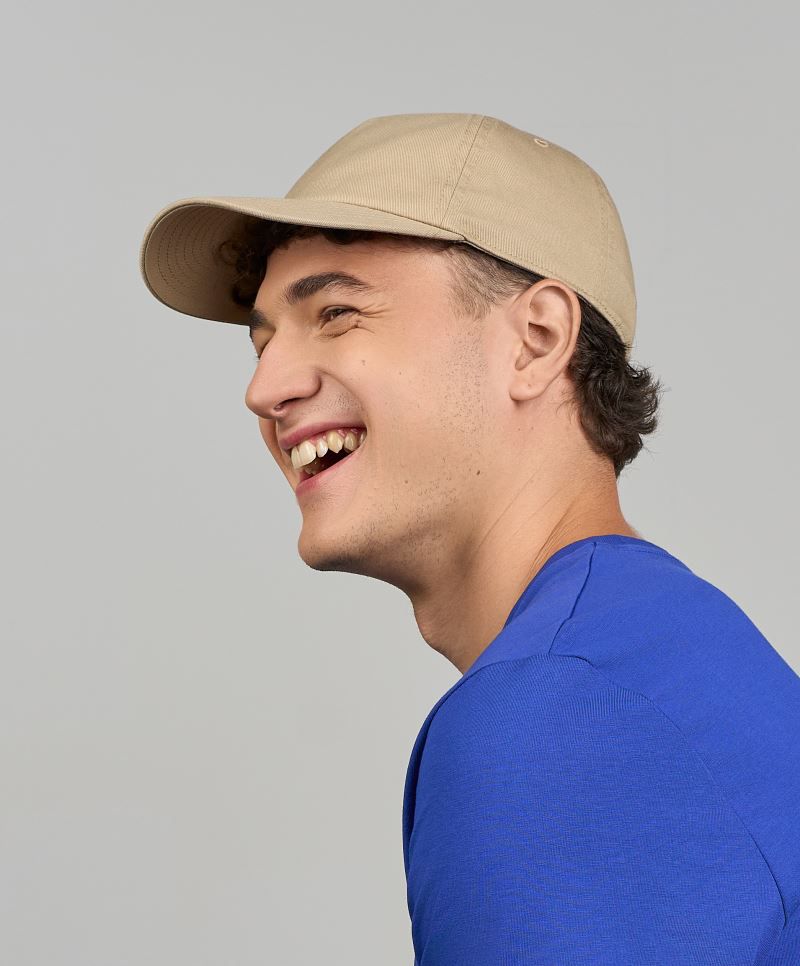 Schirminnenseite aus recyceltem Plastik, 8 Ziernähte am Schild, Frontpanel unverstärkt, mittleres Kappenprofil, gestickte Luftlöcher, Stoffband mit Metallverschluss, vorgewaschenes weiches Material, Tear Away Label, Handwäsche, nicht bügeln, nicht trocknergeeignet, nicht chemisch reinigen