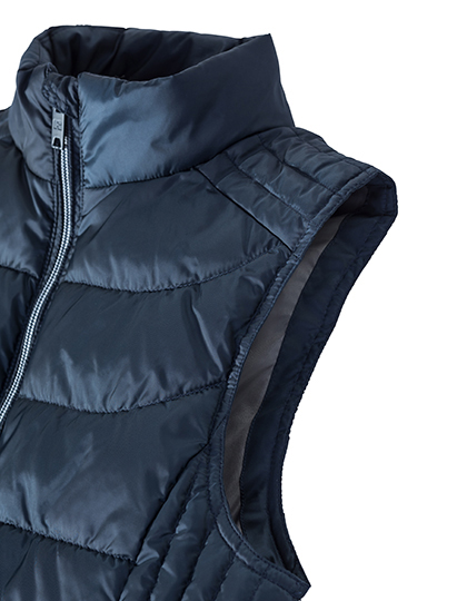 Herren Bodywarmer   Hoch belastbares DWR-Gewebe mit Aquapel von Nanotex® behandelt, Fluor- und PFC-frei, Nachhaltige Wattierung von Dupont™ Sorona®, Stehkragen mit Kinnschutz und Windschutzblende gegen Wind und Zugluft, Kontrastfarbene Reißverschlüsse, Innenfutter und Details für eine edle Optik, 2 Seitentaschen und 1 Innentasche mit Reißverschluss, Diskreter Veredelungszugang im inneren, linken BrustbereichVerstellbarer Saum mit Kordelzug, 30 °C waschbar, Trockner geeignet   Material: 66g/m², DuPont™ Sorona® Wattierung: 100% Polyester Grössen: S – 4XL