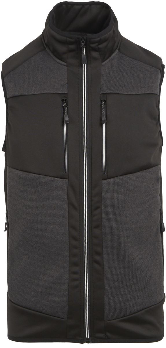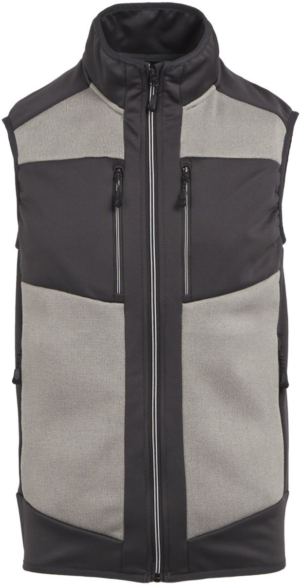 Wärmende Innenseite, eingefasste, elastische Bündchen an Armausschnitten, Saum und Kragen, 2 Seitentaschen mit Reissverschluss, 2 Brusttaschen mit Reissverschluss, melierter Stoff, reflektierendes Detail