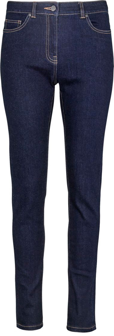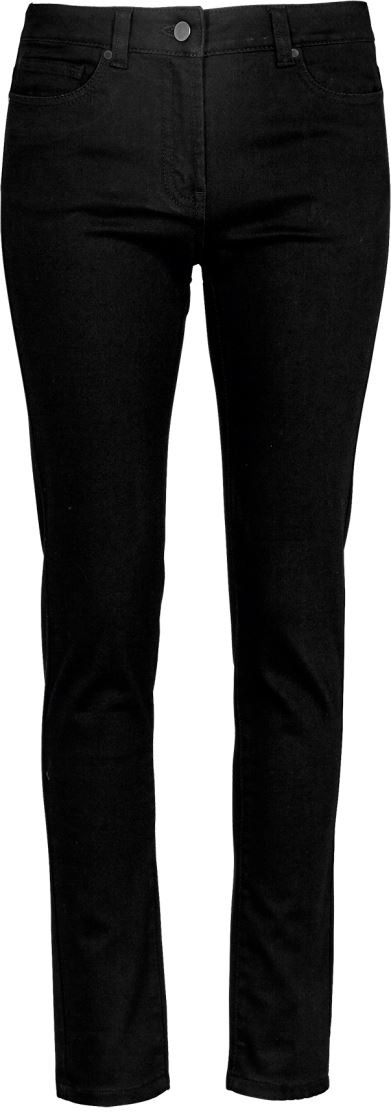 Gerader Schnitt, Gürtelschlaufen, Reissverschluss und Knopf, 2 Taschen vorne und 1 Tickettasche, 2 Gesässtaschen, matte Metallknöpfe und -nieten, französische Grössen: bitte Umrechnung entsprechend Masstabelle