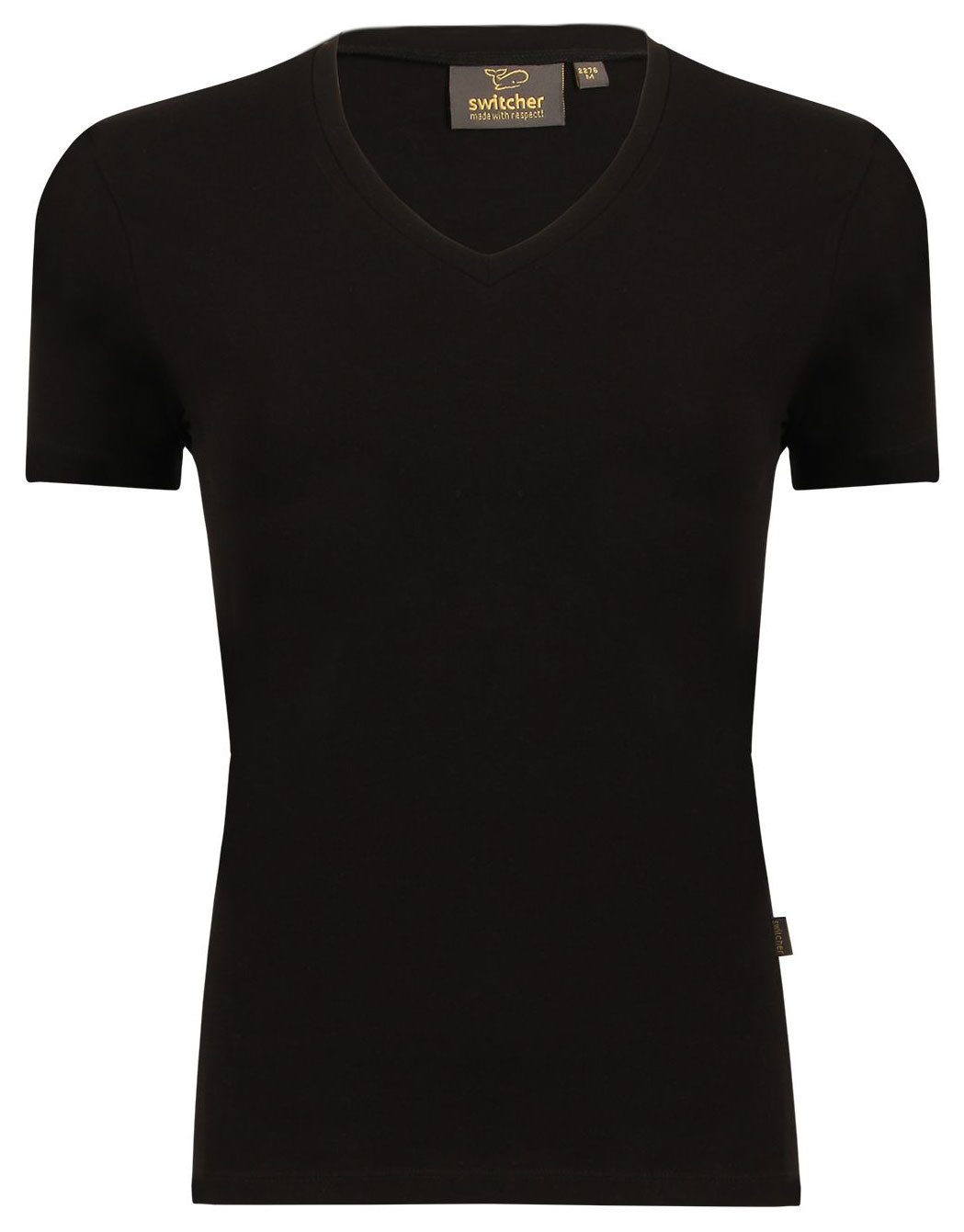 SWITCHER DAMEN T-SHIRT BIO «RIB» Klassisches Damen Rib T-Shirt mit fein geschnittenem V-Ausschnitt.· Nackenband, Doppelnaht an Arm und Bund· Mit Seitennaht· Material: rib 1x1 /  100% Bio Baumwolle, 220 g/m2· Waschbar: 40 Grad