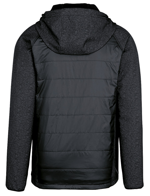 Leichte, wasserabweisende und atmungsaktive Hybridjacke mit kontrastfarbigen Raglanärmeln, Einsätzen an den Seiten, Kragen und Schultern, hochwertigem 2-Wege-Frontreißverschluss mit innenliegender Windschutzpatte und Kinnschutz, funktioneller MP3-Player-/iPod-Innentasche und Einschubtaschen mit Reißverschlüssen. Alle Reißverschlüsse von YKK®. Weitenverstellbarer Saumabschluss mit Tunnelkordelzug und Stoppern, verlängertes, abgerundetes Rückenteil und Reflexapplikation für bessere Sichtbarkeit. Hergestellt aus einem Materialmix aus atmungsaktivem Micro-Ripstop mit Wattierung aus pflegeleichten Kunstfasern und Einsätzen aus dehnfähigem Softshell-Material. Gewebtes HAKRO-Necklabel aus hochwertigem Kettsatin mit weichen, ultraschallgeschnittenen Bandkanten für höchsten Tragekomfort.