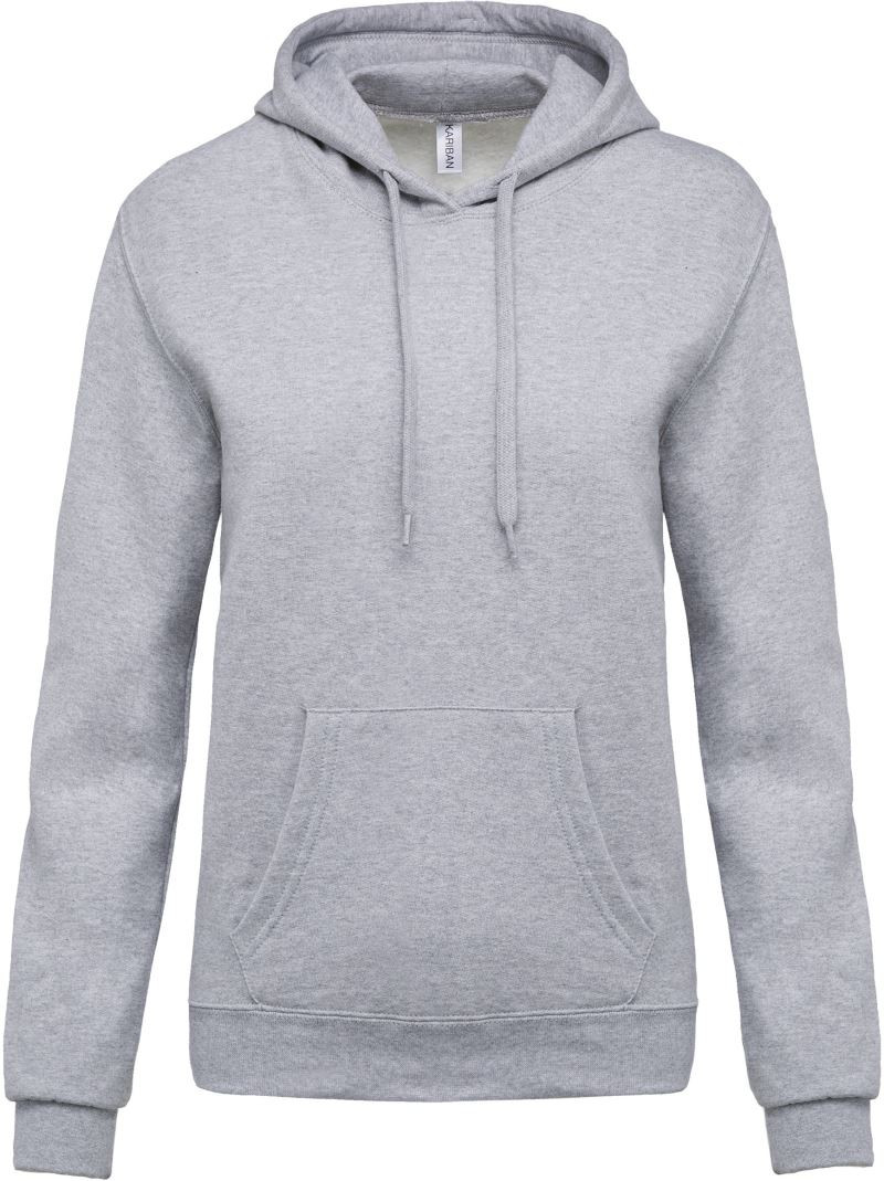 Damen Kapuzen Sweater Material: 280g/m², 80% Baumwolle, 20% Polyester Gefütterte Kapuze mit Kordel Ton-in-Ton, Set-In Ärmel, Strickbündchen an Ärmel und Saum, Kängurutasche, innen angeraut, 40° waschbar, nicht trocknergeeignet, nicht chemisch reinigen Grössen: XS – XXL