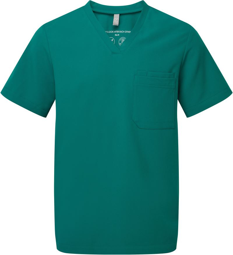 Atmungsaktiv, V-Ausschnitt, Brusttasche links, Seitenschlitze, Abnäher am Rücken, 4-Wege Stretchmaterial, strapazierfähiges Material, knitterfrei, pflegeleicht, feuchtigkeitsregulierend, 40° waschbar, trocknergeeignet bei niedriger Temperatur, nicht chemisch reinigen