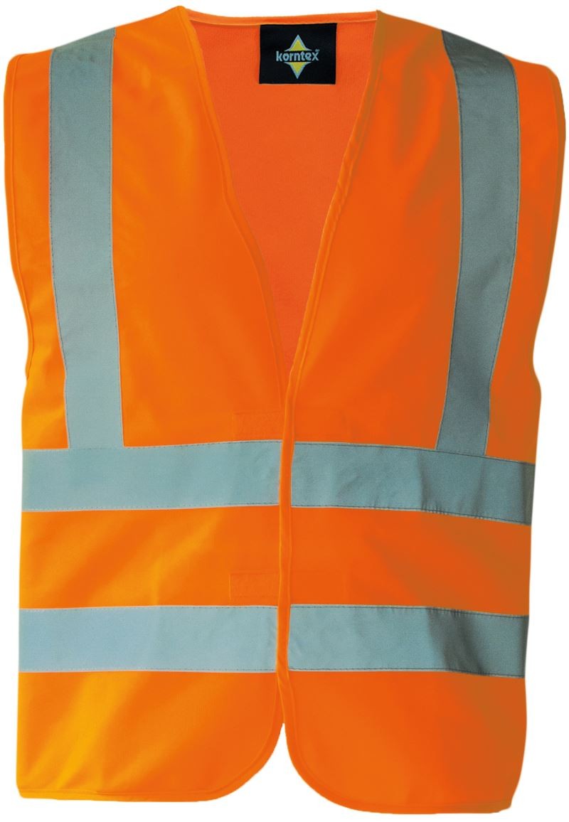 Warnweste Material: 120 g/m², 100% PolyesterKorntex® Drei-Reflektions-Streifen-Warnweste, Zertifiziert nach EN ISO 20471:2013 + A1:2016, Orange entspricht zudem der GO/RT 3279, 1, ein 5 cm breiter Reflektions-Streifen um den Körper, zwei 5 cm breite Reflektions-Streifen über der Schulter, größenverstellbar durch zwei Klettverschlüsse, mit EAN Barcode ausgestattet, Gebrauchsanweisung in den 24 Amtssprachen der EU, einzeln in Polybeutel verpackt, 40 °C waschbar Grössen: L - XXL