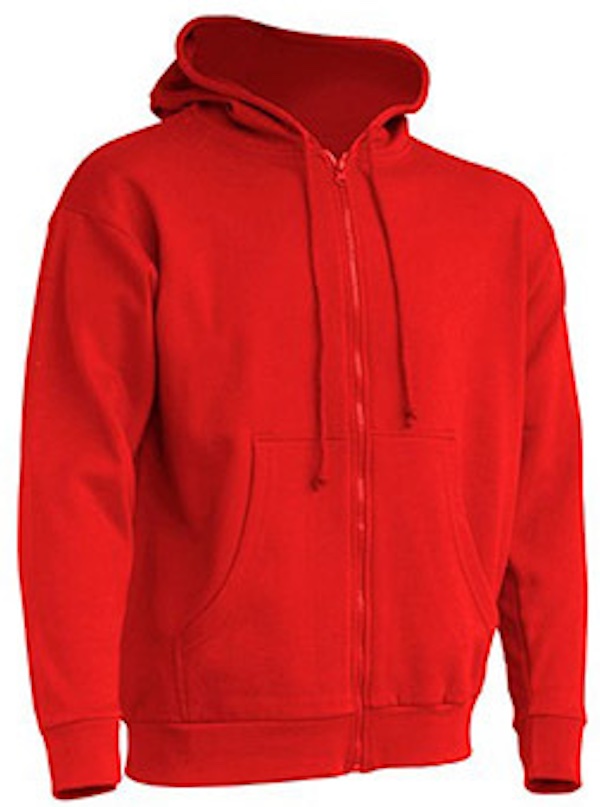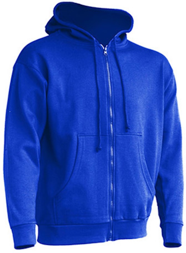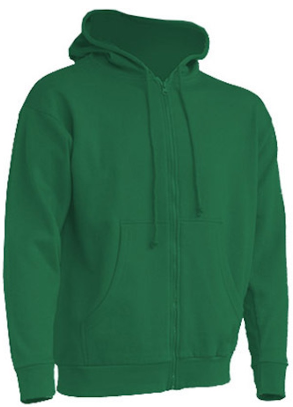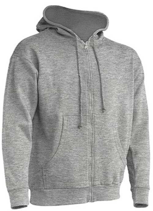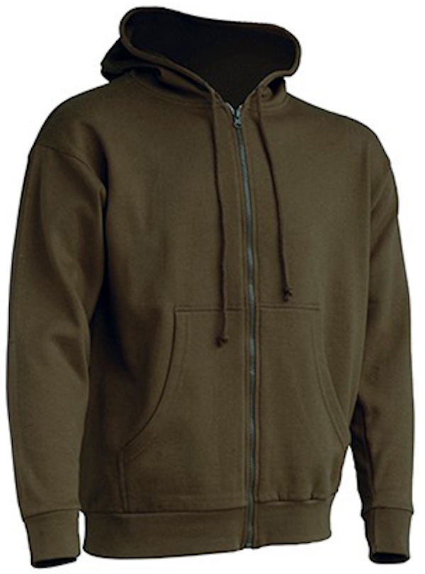 Durchgängiger Reißverschluss in passender Farbe, Kordeln in passender Farbe, Kängurutaschen, 1x1 Lycra Ripp-Strick-Ärmelbündchen und Bund unten mit doppelten Nähten