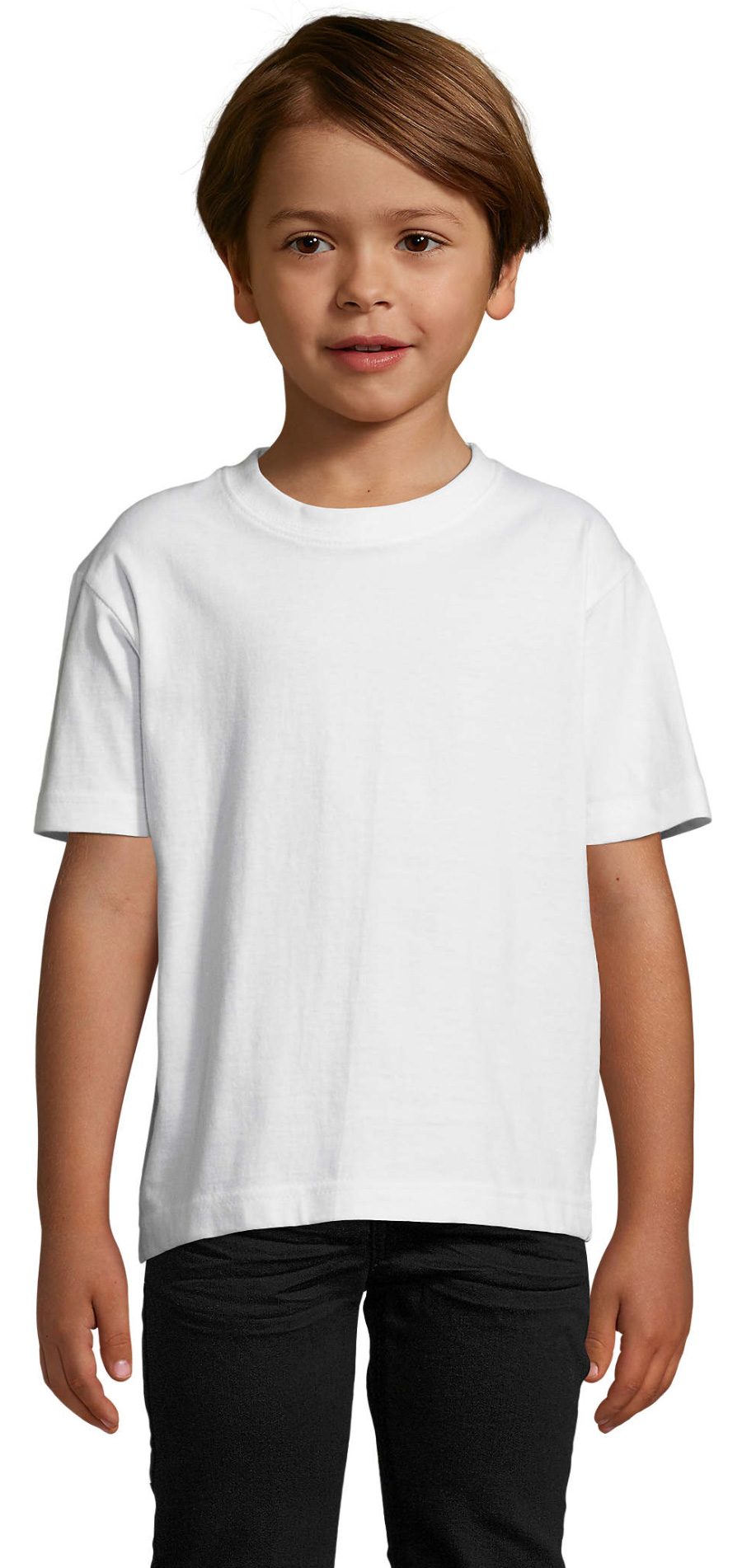 Langarm Kinder T-ShirtMaterial: 190 g/m², 100% Baumwolle 100% halbgekämmte Baumwolle, Nackenband, Elasthan-Rippkragen, Rundhals, Langarm, Seitennähte Größen: 4 – 12 Jahre
