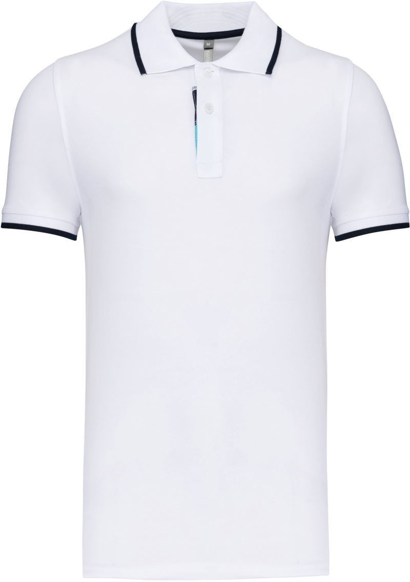 100% Gekämmtes Baumwoll Pique - Gerippte Bündchen mit Kontrastpaspeln auf und unter dem Kragen - Nackenband in Kontrastfarbe mit seitlichen Lüftungsschlitzen - Knopfleiste mit unterliegendem dreifarbigem Detail und zwei Knöpfen - Flache Bündchen mit Kontrastpaspelierung - Doppelnaht Verarbeitung
