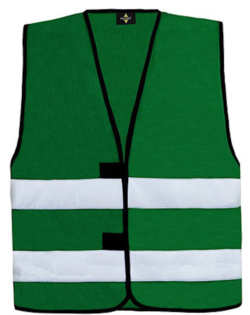 Funktionsweste Material: 100% Polyester Zwei 5cm breite Reflexstreifen um den Körper, Grössenverstellung durch zwei Klettverschlüsse, umsäumt mit schwarzer Polyestereinfassung Grössen: S – 7XL(Fabe Rosa nur in L, XL und XXL)