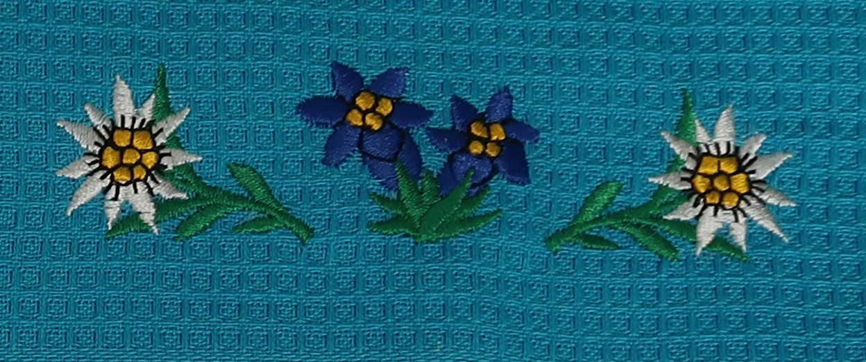 Küchentuch Waffelpikée Edelweiss Enzian Stickerei