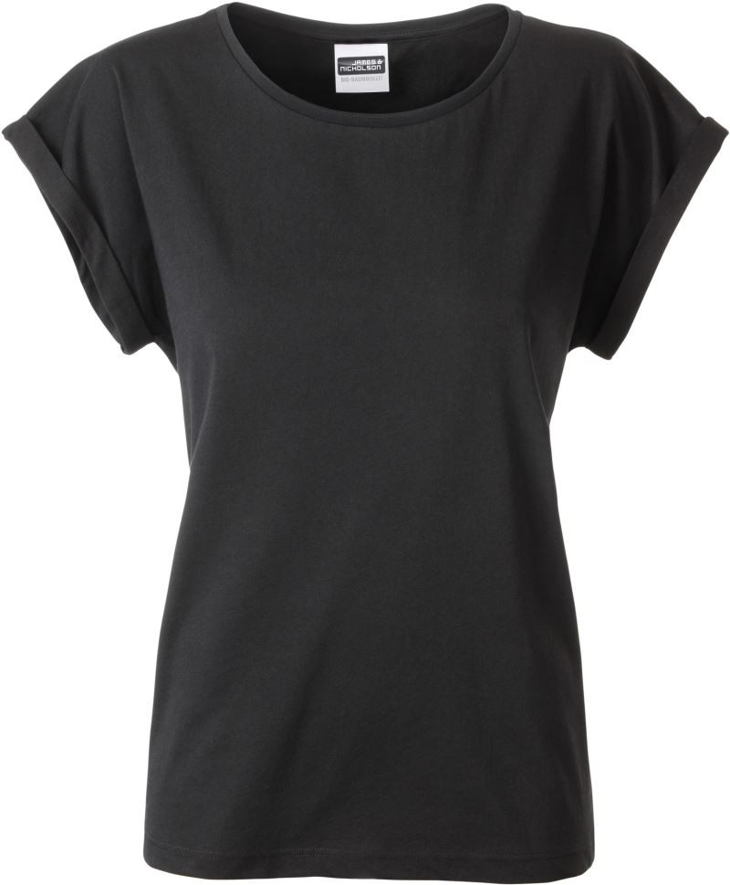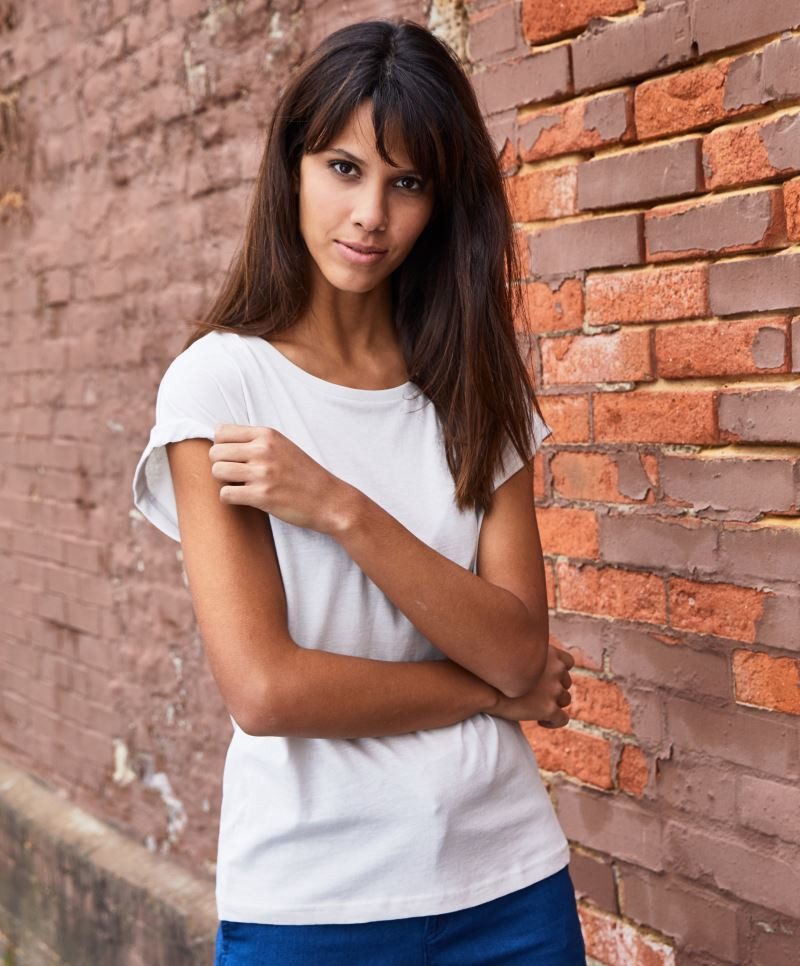 Großzügiger Schnitt, flacher, großzügiger Rundhalsausschnitt, Armausschnitt mit Umschlag, Bündchen mit Elasthan, überschnittene Schulter, Tear off!® Label und neutrales Größenlabel im Nacken