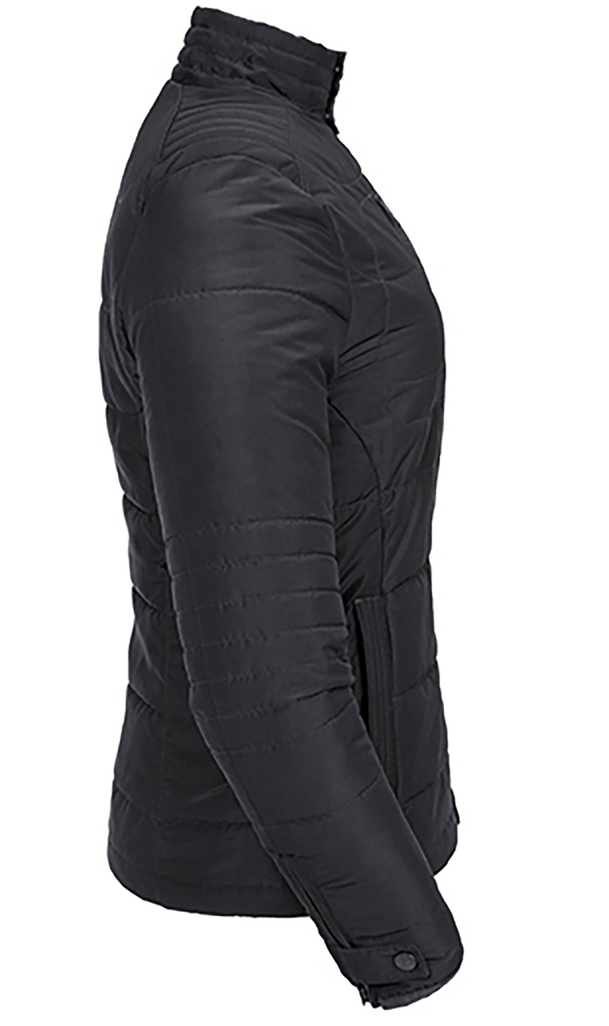 Körperbetonte Passform, hoch belastbares DWR-Gewebe mit Aquapel von Nanotex® behandelt, Fluor- und PFC-frei, nachhaltige Wattierung von Dupont™ Sorona®, Stehkragen mit 2 Druckknöpfen und Windschutzblende gegen Wind und Zugluft, umgekehrte Reißverschlüsse (Reißverschlussspirale innenliegend) in der Mitte, an Brusttasche, Seitentaschen und Ärmeln, Innentasche mit Reißverschluss, dekorative Ärmellasche mit Druckknopf, diskreter Veredelungszugang im inneren, linken Brustbereich, 30 °C waschbar