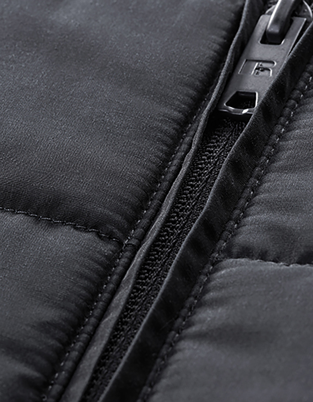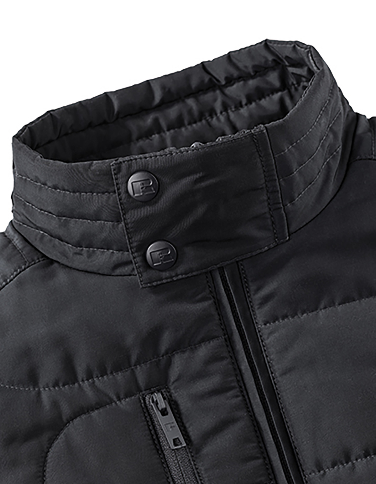 Herren Jacke   Körperbetonte Passform, hoch belastbares DWR-Gewebe mit Aquapel von Nanotex® behandelt, Fluor- und PFC-frei, nachhaltige Wattierung von Dupont™ Sorona®, Stehkragen mit 2 Druckknöpfen und Windschutzblende gegen Wind und Zugluft, umgekehrte Reißverschlüsse (Reißverschlussspirale innenliegend) in der Mitte, an Brusttasche, Seitentaschen und Ärmeln, Innentasche mit Reißverschluss, dekorative Ärmellasche mit Druckknopf, diskreter Veredelungszugang im inneren, linken Brustbereich, 30 °C waschbar Material: 125g/m², DuPont™ Sorona® Wattierung: 100% Polyester   Grössen: S – 4XL