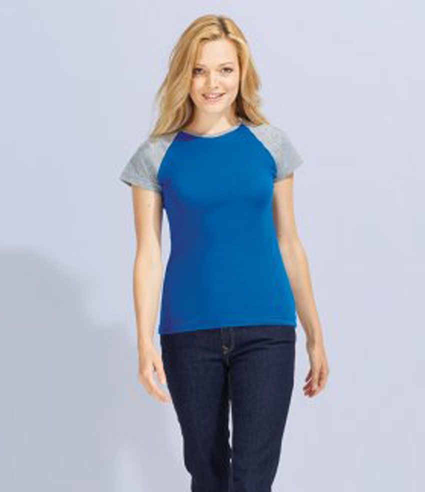 Ladies Milky Contrast Baseball T-Shirt Sol's 11195 royal/grey melange S