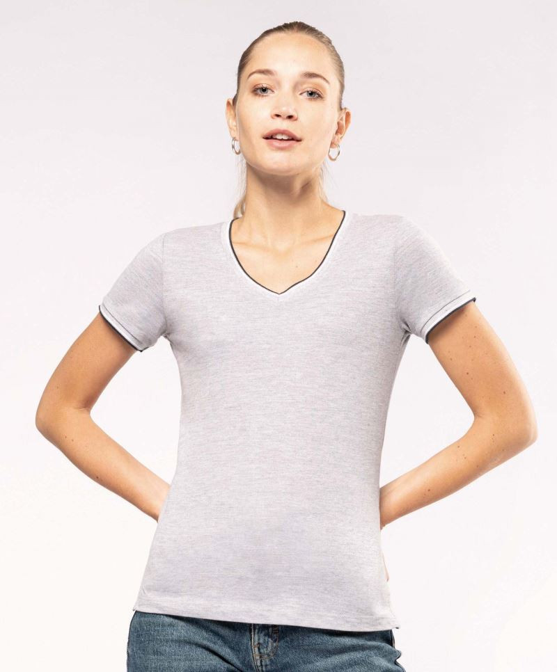 Damen Piqué V-Neck T-Shirt