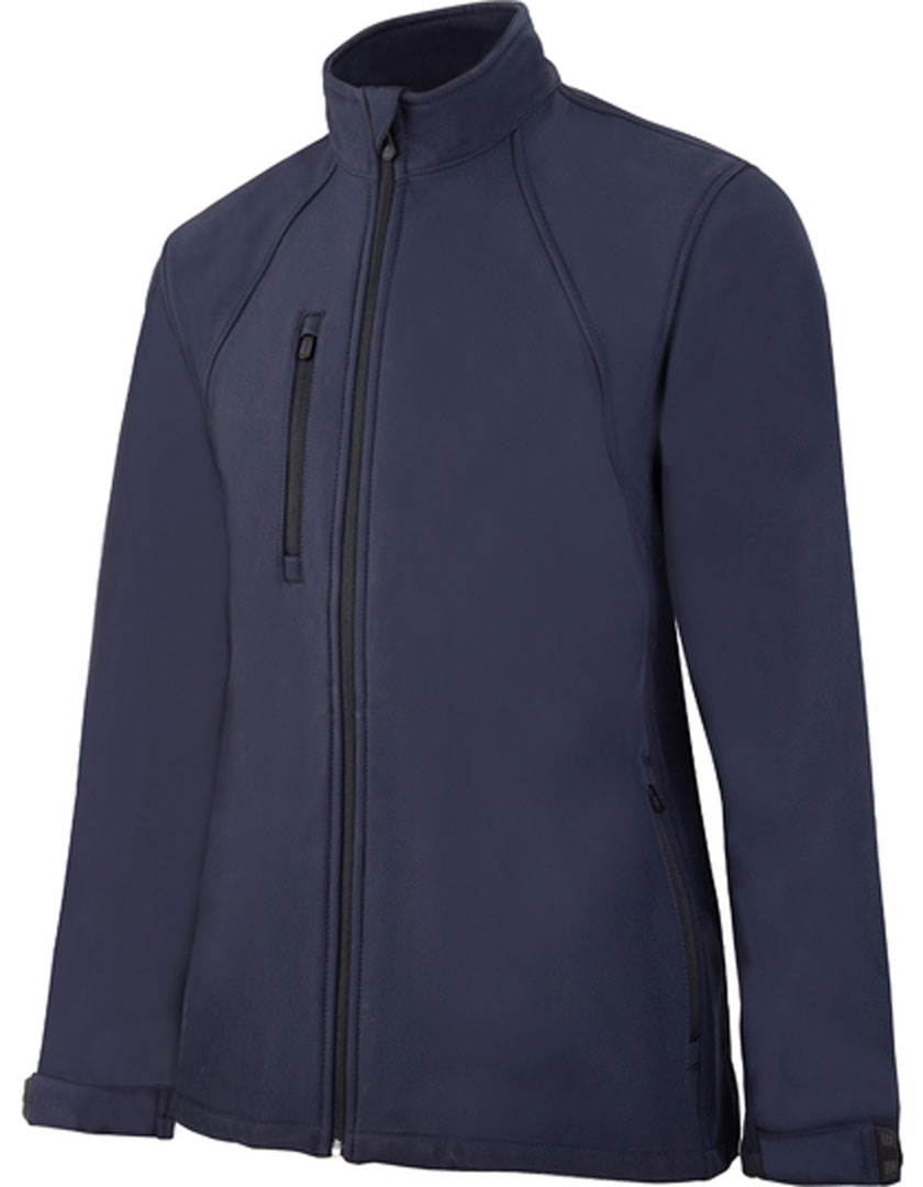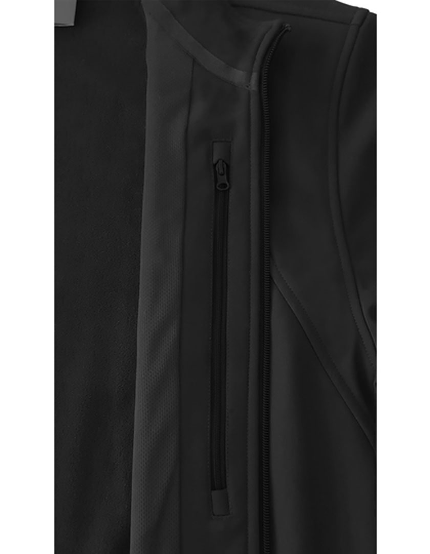 Softshell-Jacke Material: 340 g/m², 95% Polyester / 5% Elasthan 4-lagiger Stretch, wasserdicht bis 8.000 mm, atmungsaktiv bis 3.000 g/m²/24h, windabweisend, Antipilling, durchgehender Reißverschluss vorne mit Windschutzleiste innen, Brust- und Seitentaschen mit Wende-Reißverschlüssen, Normaler Schnitt, Raglan-Ärmel, Stehkragen, verlängerter Rücken, elastische Kordel am Saum, verstellbare Manschetten, veredlungszugang durch inneren Reißverschluss, ISO 9001, 40 °C waschbar Grössen: S – XXL