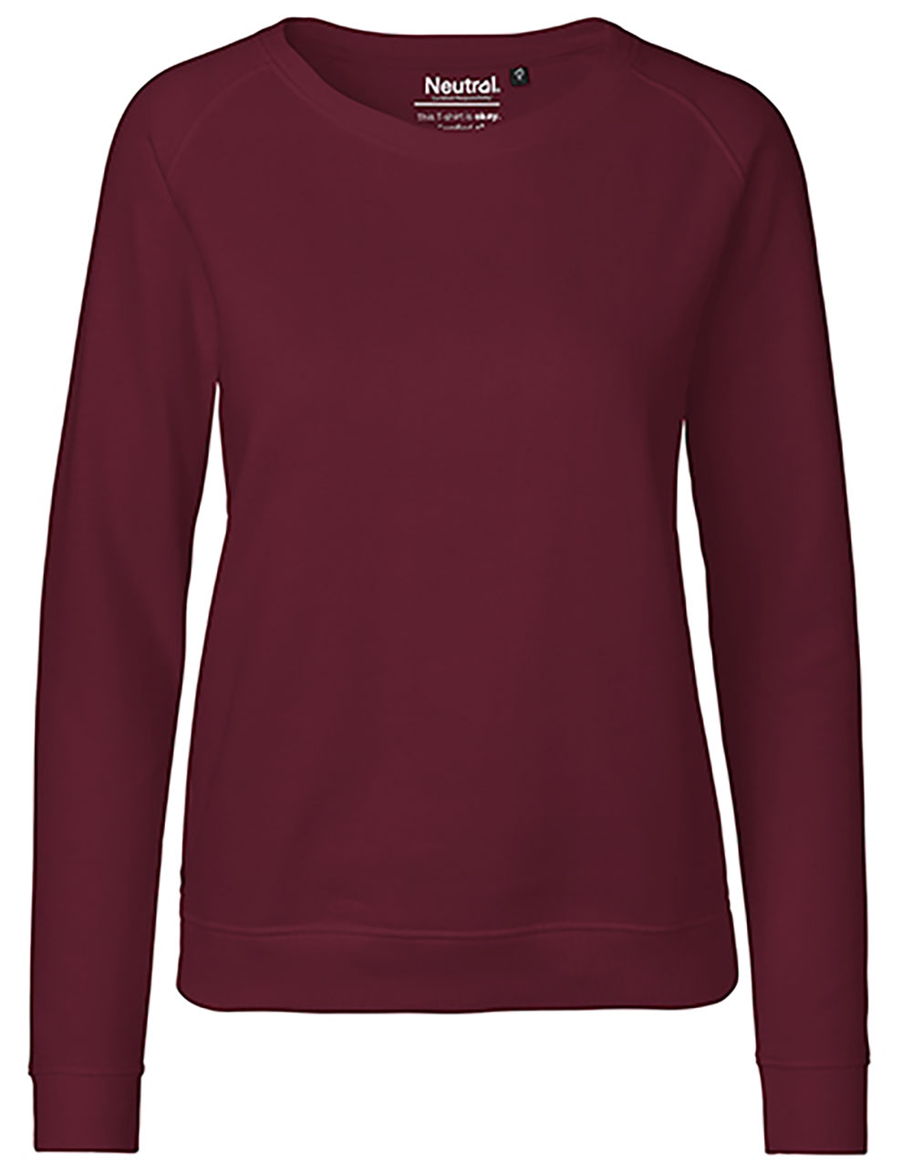 300 g/m², Gekämmte Bio-Baumwolle, Vlies mit gebürsteter Rückseite, Rundhalsausschnitt, Raglan-Ärmel, Ripp-Strick an den Ärmeln und am unteren Saum
