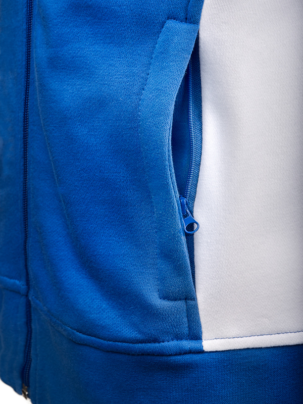 Strapazierfähige, pflegeleichte Baumwoll/Polyester-Mischung, Innenseite angeraut, Kontrastfarbige Einsätze an Seite und Schulter, Paspel an Schulter-Vorderteil , Rippstrickbündchen mit Elasthan an Arm- und Bundabschluss, 2 Seitentaschen mit verdecktem Reißverschluss, leicht tailliert, 60° waschbar, trocknergeeignet