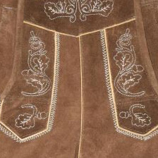 Traditionelle 3/4 lange Damen Lederhose, inklusive Träger und Brustschild, Stickereien an den Seiten und vorne