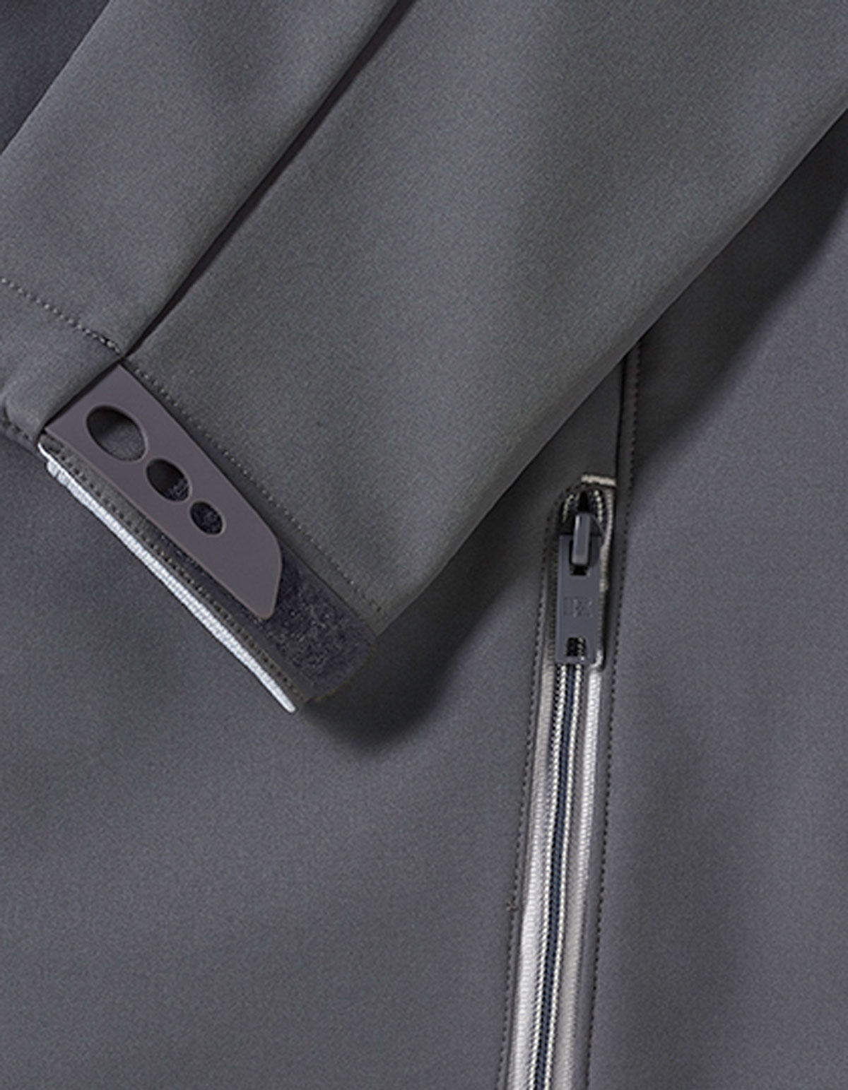 Wasserabweisend (5.000mm Wassersäule), atmungsaktiv (5.000g/m² in 24h), windfest, Stehkragen mit Windschutzblende, nahtlose Schulterbereiche, kontrastierende Reißverschlüsse, Reißverschlussschutz am Kragen, seitliche Einschubtaschen mit Reißverschluss, verdeckte Reißverschlusstaschen an der Brust und am Ärmel, verstellbare Ärmelabschlüsse mit Ärmelschließe und Klettverschlusslasche, verstellbare Saumweite, Veredelungszugang im Futter, Fluor- und PFC frei
