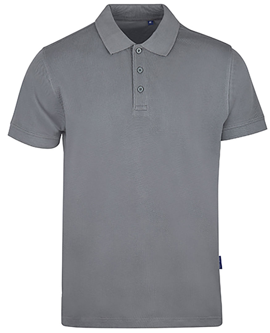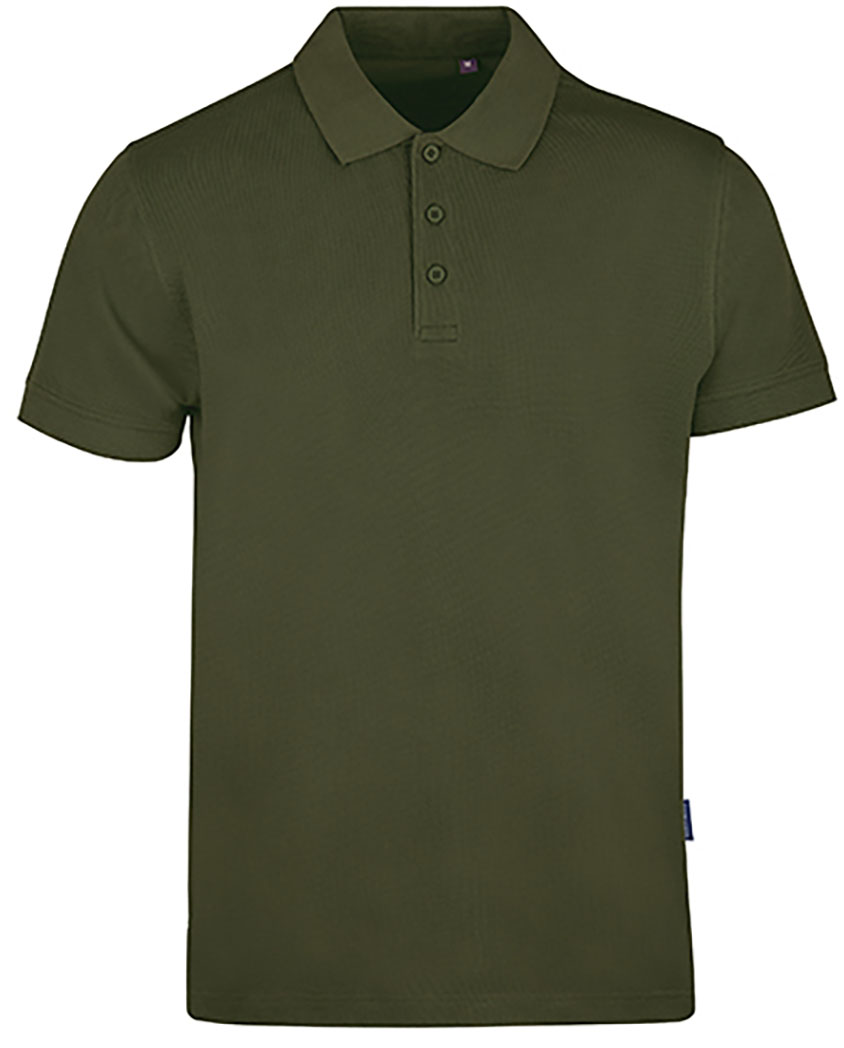 Ringgesponnen, robustes Doppel-Piqué, körperbetonter Schnitt, verstärktes Nackenband und Seitenschlitze, Kragen und Ärmelabschluss aus 1x1 Ripp-Strick, 3-Knopfleiste (Ton-in-Ton), Ersatzknopf, Labelfrei, gewebtes Fair4All Flaglabel in der linken Seitennaht, einlaufvorbehandelt und Anti-Pilling, waschbar bis 60 °C und für Industriewäsche geeignet, BSCI zertifizierte Produktion