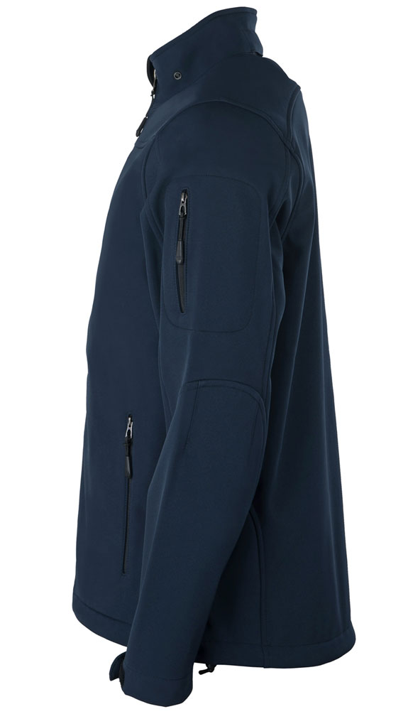 Soft-Shell-Jacke mit abnehmbarer Kapuze Material: 300 g/m², Außenmaterial: 97% Polyester / 3% Elasthan, Innenmaterial: 100% Polyester Weiches, atmungsaktives und witterungsbeständiges Mischgewebe, Innenseiten hochwertiges Micro-Polarfleece, hochwertig verarbeitet, zeitloses Design, modische Passform, 3-lagig, Winddicht, atmungsaktiv und wasserabweisend, 5.000 mm Wassersäule, abnehmbare Kapuze, Kapuzenbefestigung mit Reißverschluss und zwei seitlichen Druckknöpfen, beide Seitentaschen, Ärmeltasche links und die linke Innentasche sind mit Kontrast-Reißverschlüssen, Zipperpullern und Zippergarage ausgestattet, Veredelungszugang in der linken Innenseite, Ärmelweite mit Klettverschluss und Saumweite mit elastischem Kordelzug verstellbar, abgerundeter Saum, 40 °C waschbar Grössen: XS – 3XL