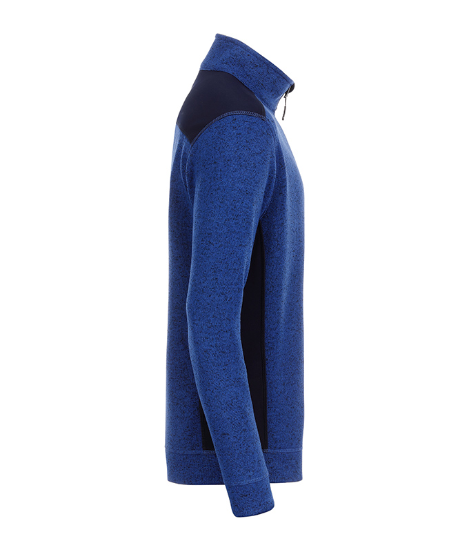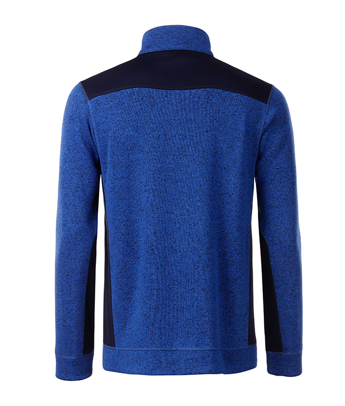 Pflegeleichte Strickfleece Jacke im Materialmix Oberstoff (280 g/m²): 100% Polyester Weiches, wärmendes, pflegeleichtes Material in Melangeoptik, Außenseite Strickoptik, Innenseite flauschig weich angeraut, elastische Softshelleinsätze an Seite, Schulter und Ärmel, 2 Seitentaschen mit verdecktem Reißverschluss, Stehkragen, durchgehend unterlegter Reißverschluss mit Kinnschutz, JN861: leicht tailliert Größen: XS - 4XL