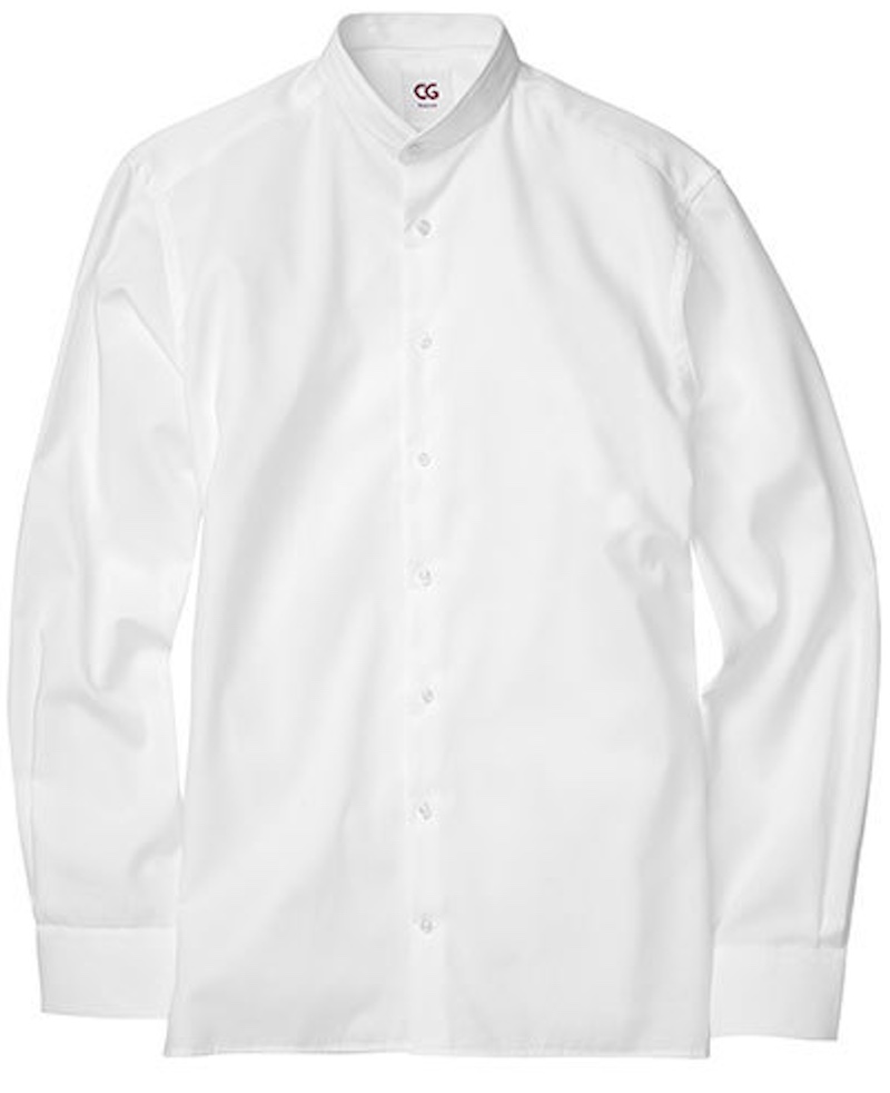 Langarmiges Herrenhemd mit Stehkragen, Knöpfen mit Kreuzstich und Stretchanteil für einen bequemen Tragekomfort.