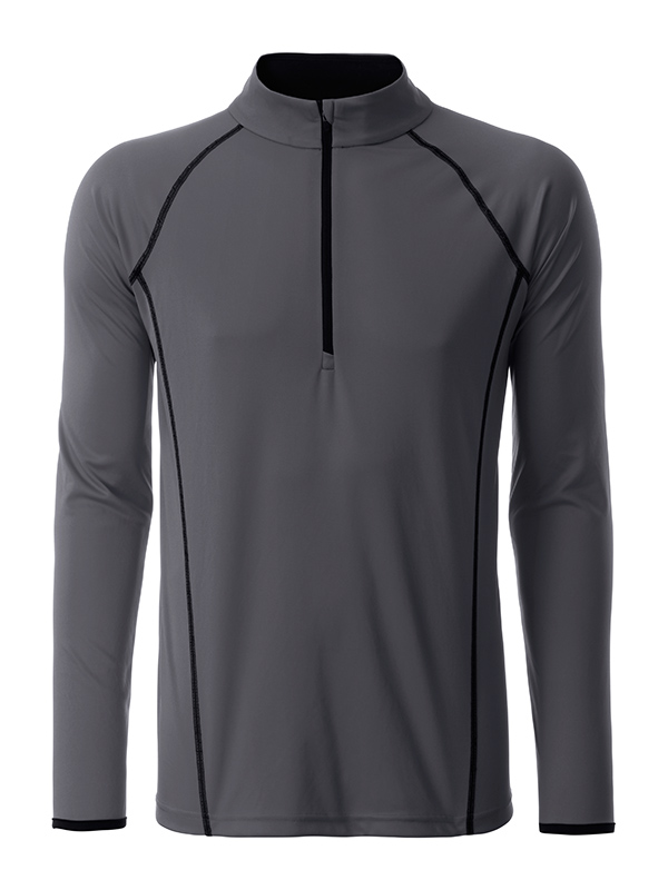 Atmungsaktiv und feuchtigkeitsregulierend, Schnell trocknend, leicht und komfortabel, Raglanärmel, Stehkragen, Kontrastfarbige Flatlocknähte im Vorder- und Rückenteil, Kragen innen und Armabschluss in Kontrastfarbe, Reißverschluss mit Kinnschutz