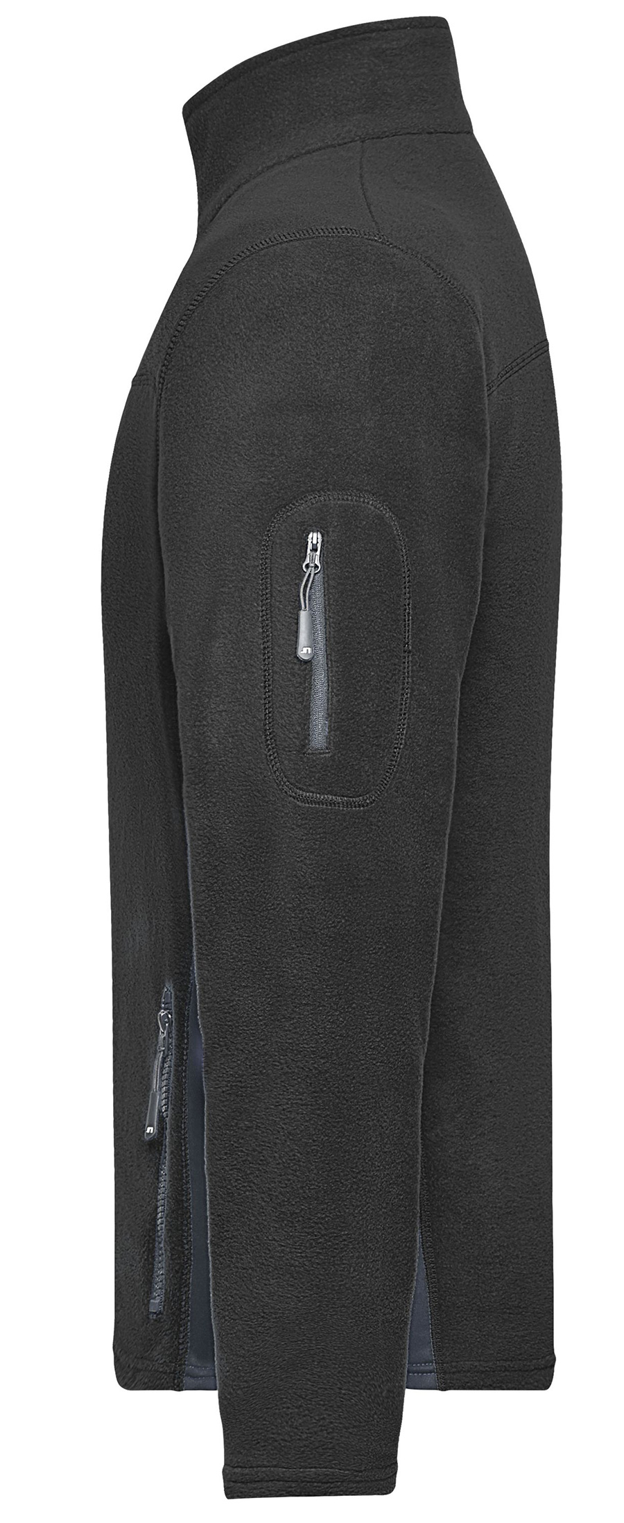 Pflegeleichter Anti-Pilling-Microfleece, elastische Softshell-Einsätze in Kontrastfarbe an Arm und Seite, unterlegter Reißverschluss mit Kinnschutz, Stehkragen, 2 seitliche Taschen und Ärmeltasche mit Reißverschluss, JN841: leicht tailliert