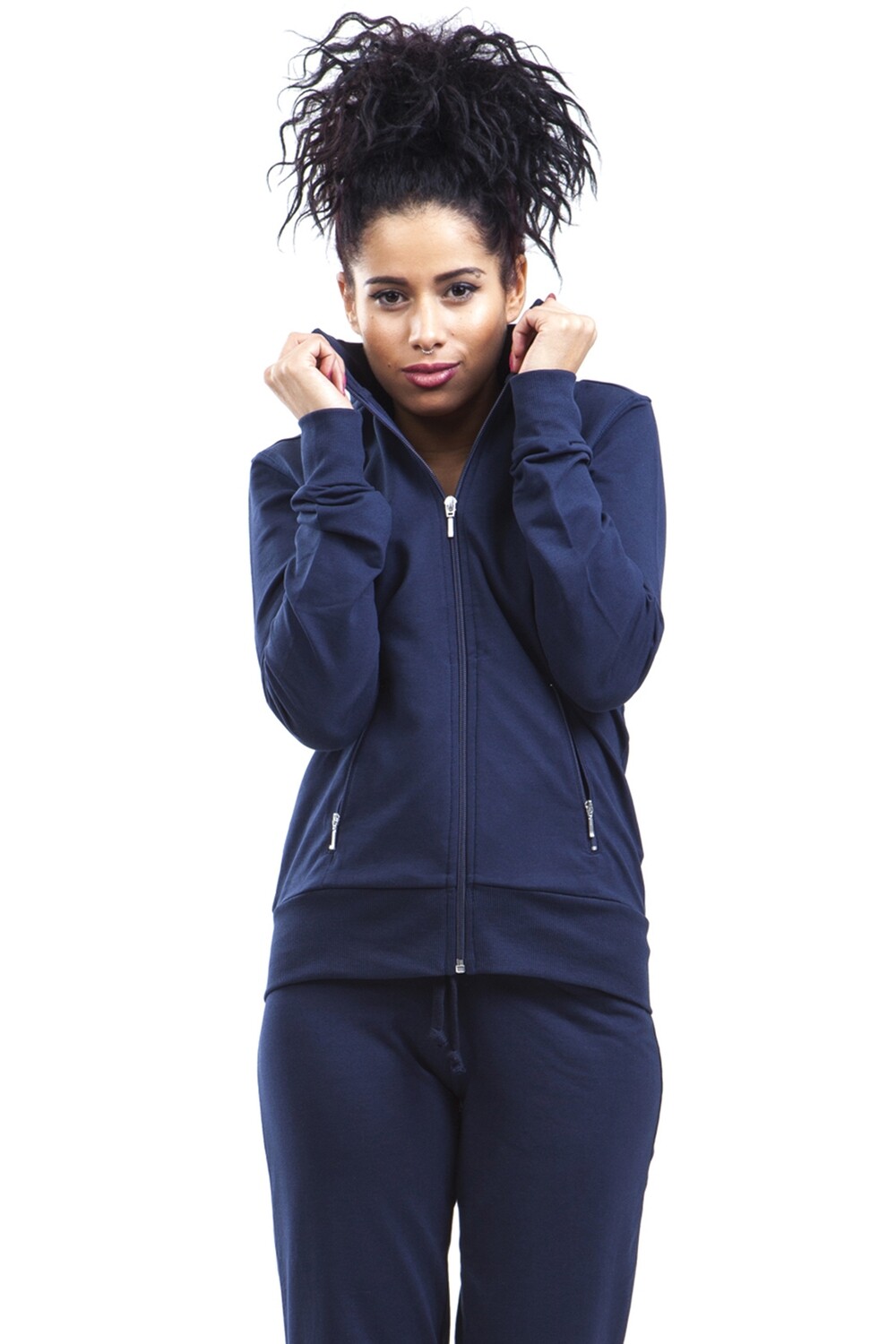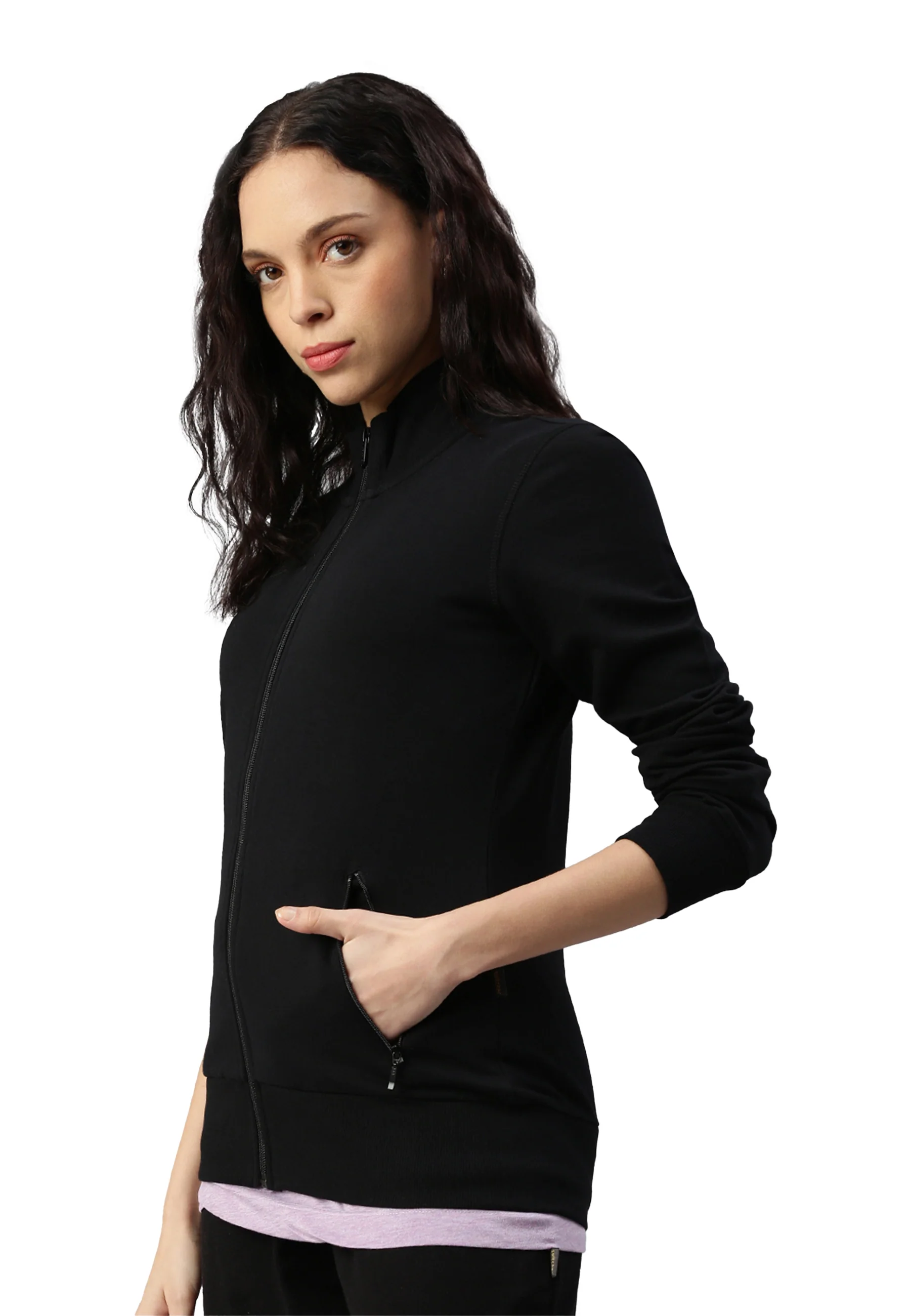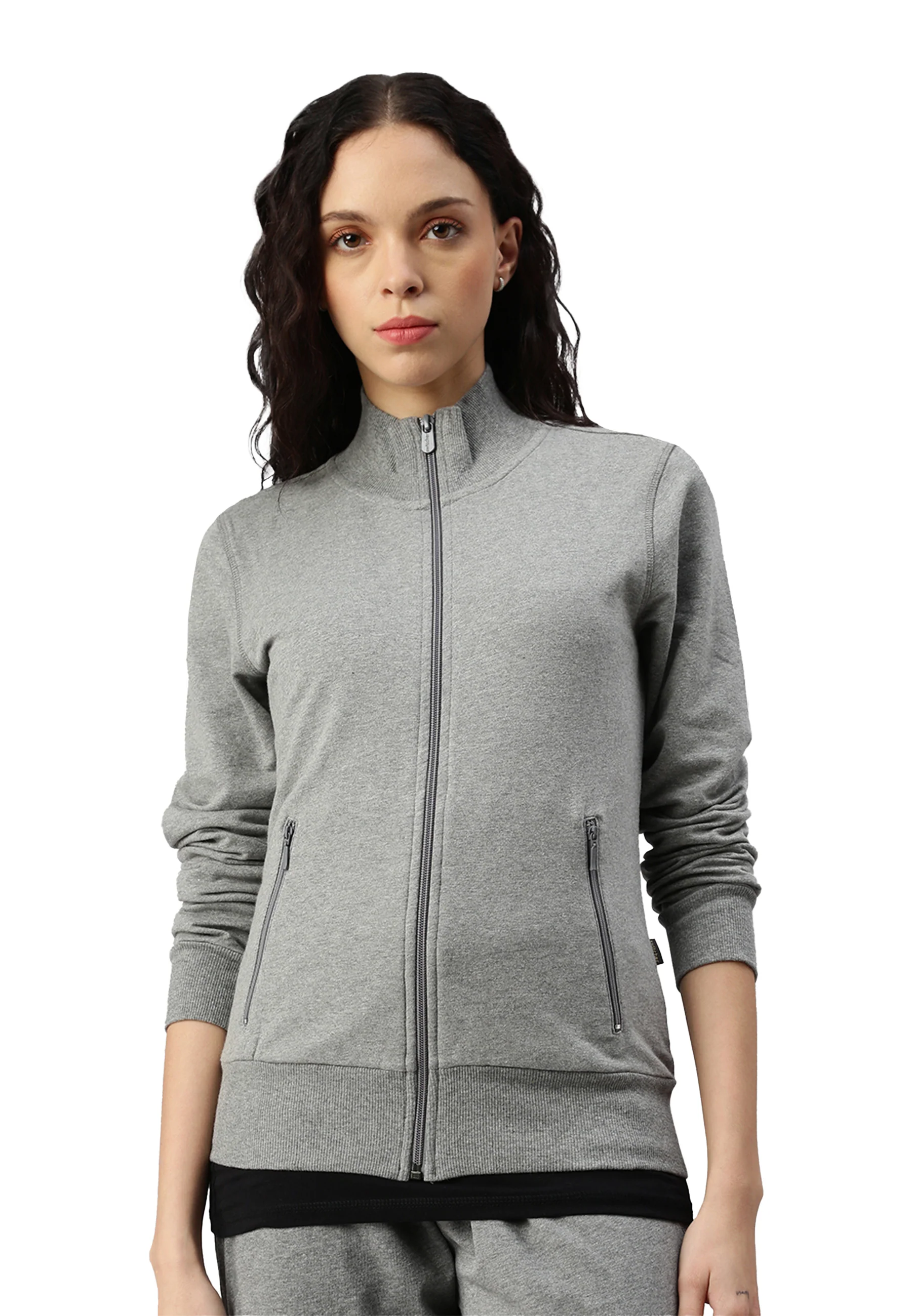 Damen Sweatjacke aus angenehmer Stretchbaumwolle für einen höheren Tragekomfort.