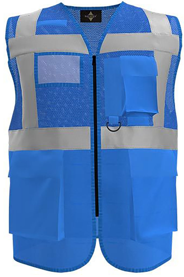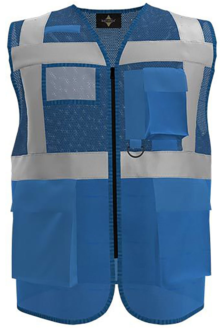 Multifunktionsweste Material: 100% Polyester Ausweistasche, Smartphone-Tasche, Stiftehalter, Schlüsselring, zwei Taschen mit Klettverschluss-Klappen, durchgehender Reissverschluss vorne, vier 5cm breite Reflexstreifen, gelb, orange, gelb/orange und gelb/blau entsprechen der EN ISO 20471:2013 (alle anderen Farben nicht) Grössen: S – 5XL  /  signal orange, signal yellow und yellow/ orange auch in 6XL und 7XL