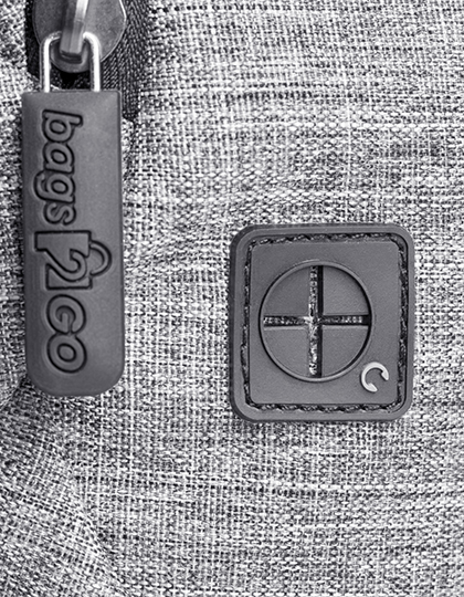 600D Polyester Rucksack in Grey Melange Material: 100% Polyester Ein Hauptfach mit Reißverschluss, Oben liegender und gepolsterter Tragegriff, zwei kleine Reißverschluss-Taschen: eine auf der Front und eine neben dem Tragegriff, alle Reißverschlüsse in Schwarz, Gummi-Zipp-Puller mit „bags2GO“-Prägung, zwei offene Seitentaschen aus Airmesh mit Gummizug, ergonomisch geformte, verstellbare und gepolsterte Schultergurte mit Griffen, weiten- und höhenverstellbarer Brustgurt mit Klick-Verschluss, Rücken im oberen und unteren Bereich stark gepolstert, Volumen: ca. 22 Liter, Lieferung ohne Inhalt/Deko Größe: 44 x 31 x 16 cm