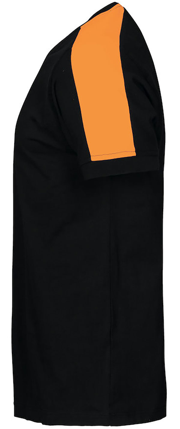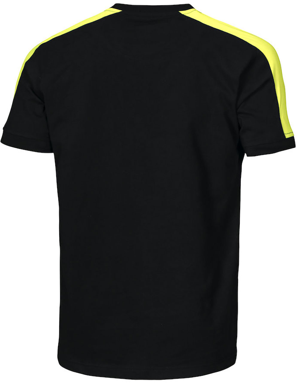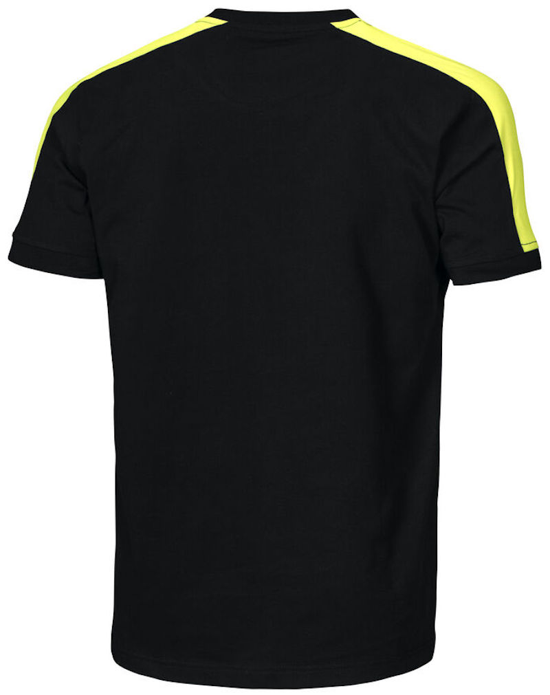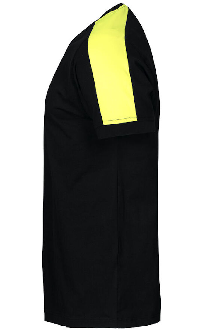 Baumwoll T-Shirt mit fluoreszierendem Material an den Schultern.