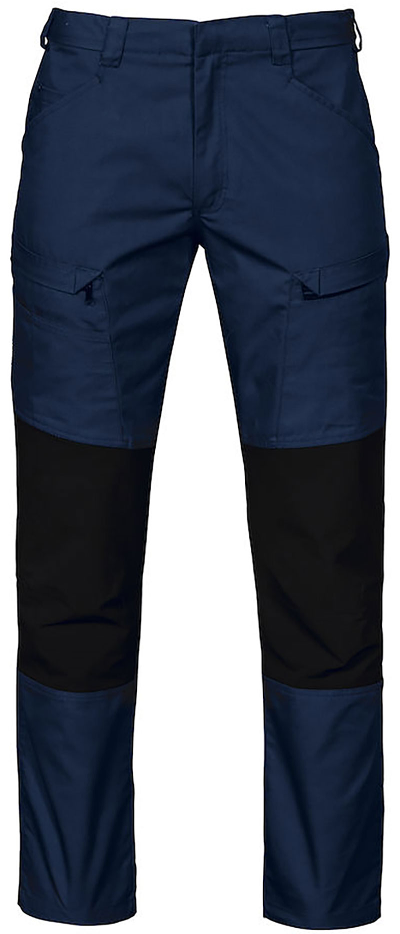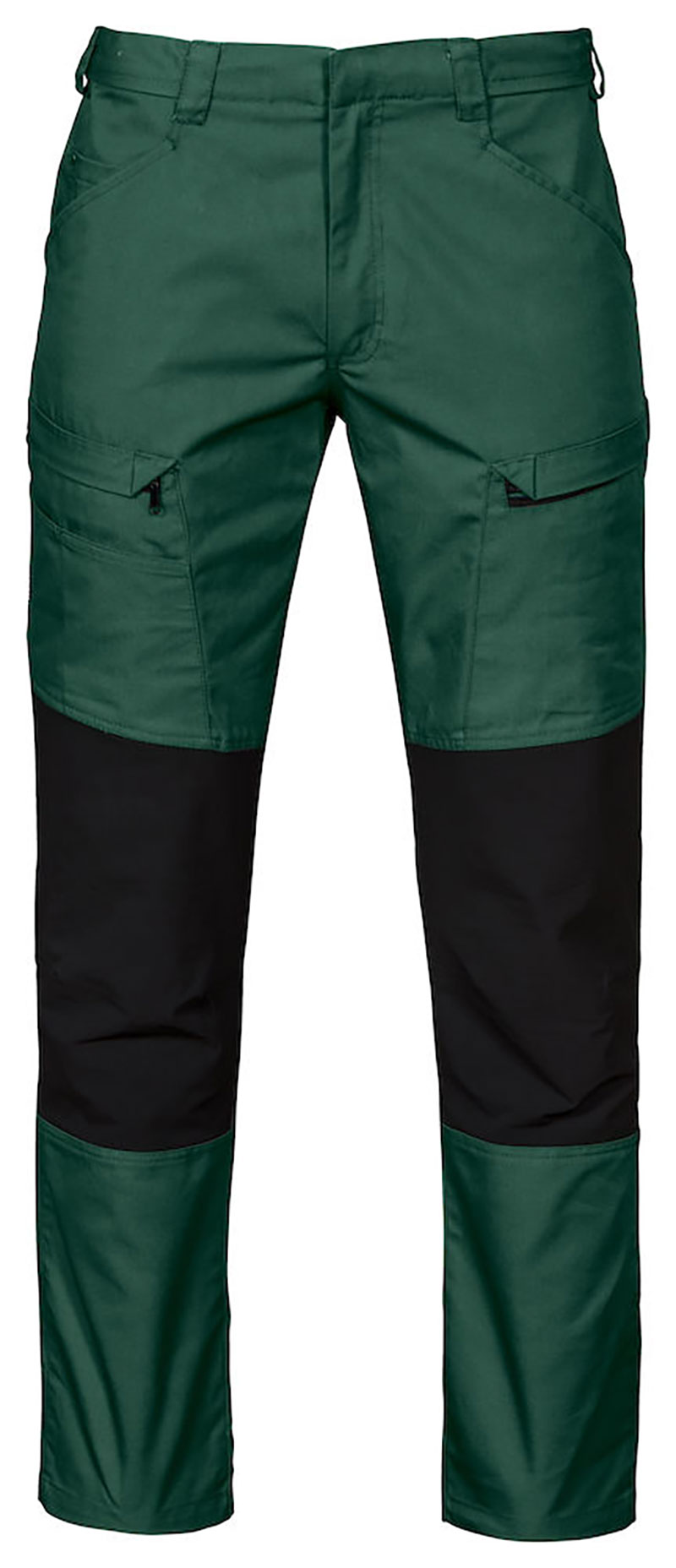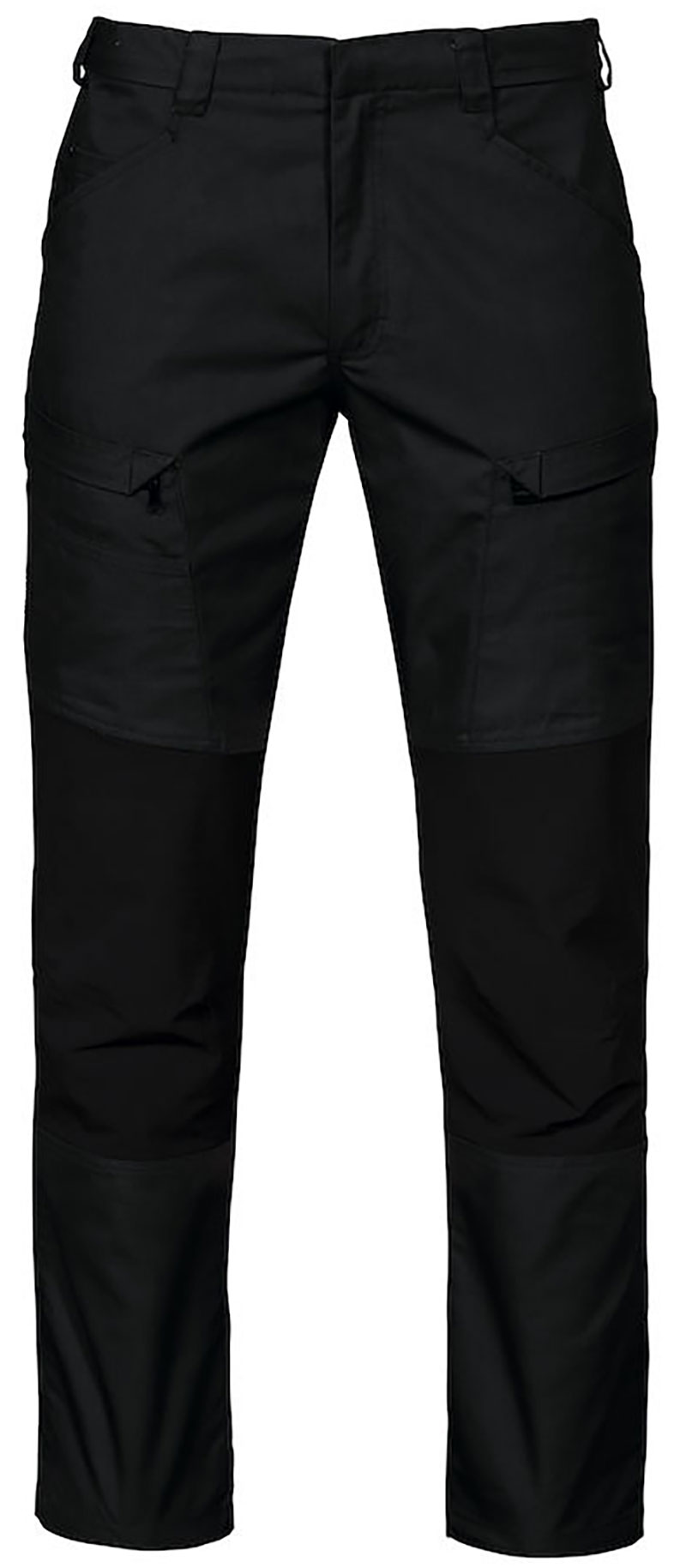 Flexibel einsetzbare Arbeitshose. Stretchmaterial an der Sitzfläche, im Schritt und an den Knien sorgen für viel Bewegungsfreiheit. Zwei Beintaschen mit RV und zwei Gesässtaschen mit Klappe. Vorbereitung für Inbags. 65% Polyester, 35% Baumwolle Damen