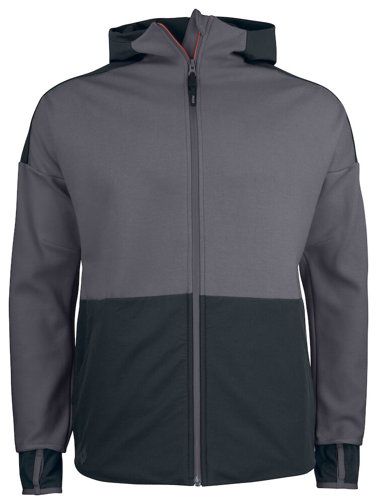 Modern geschnittene Kapuzenjacke mit Verstärkungen aus elastischem